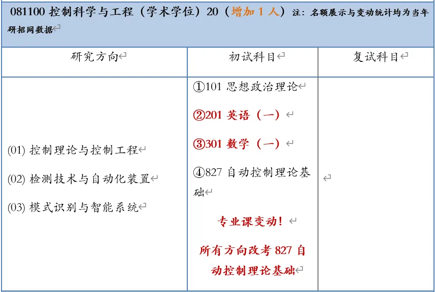 26年统招20人,相较25年增加1人。(02为新增方向,3方向改考为自动控制原理)