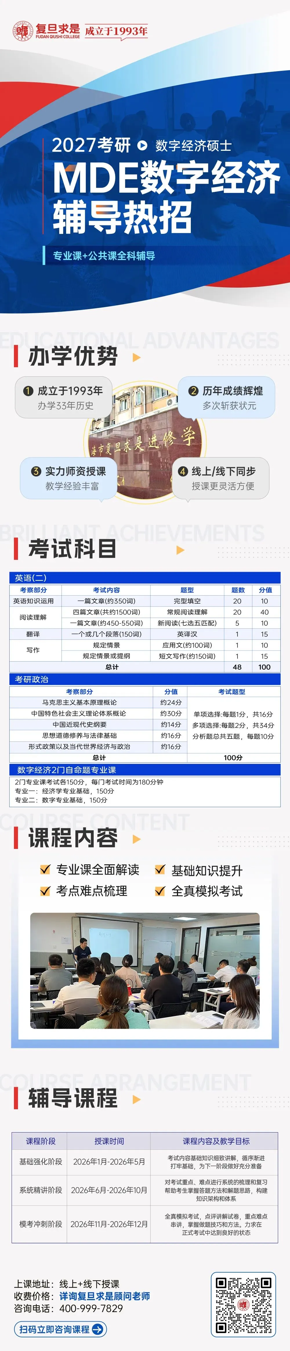 复旦大学数字经济硕士自命题专业课考试真题解读,附:2027报考指南