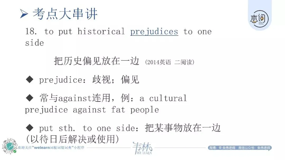 prejudice against sth. 对……的偏见