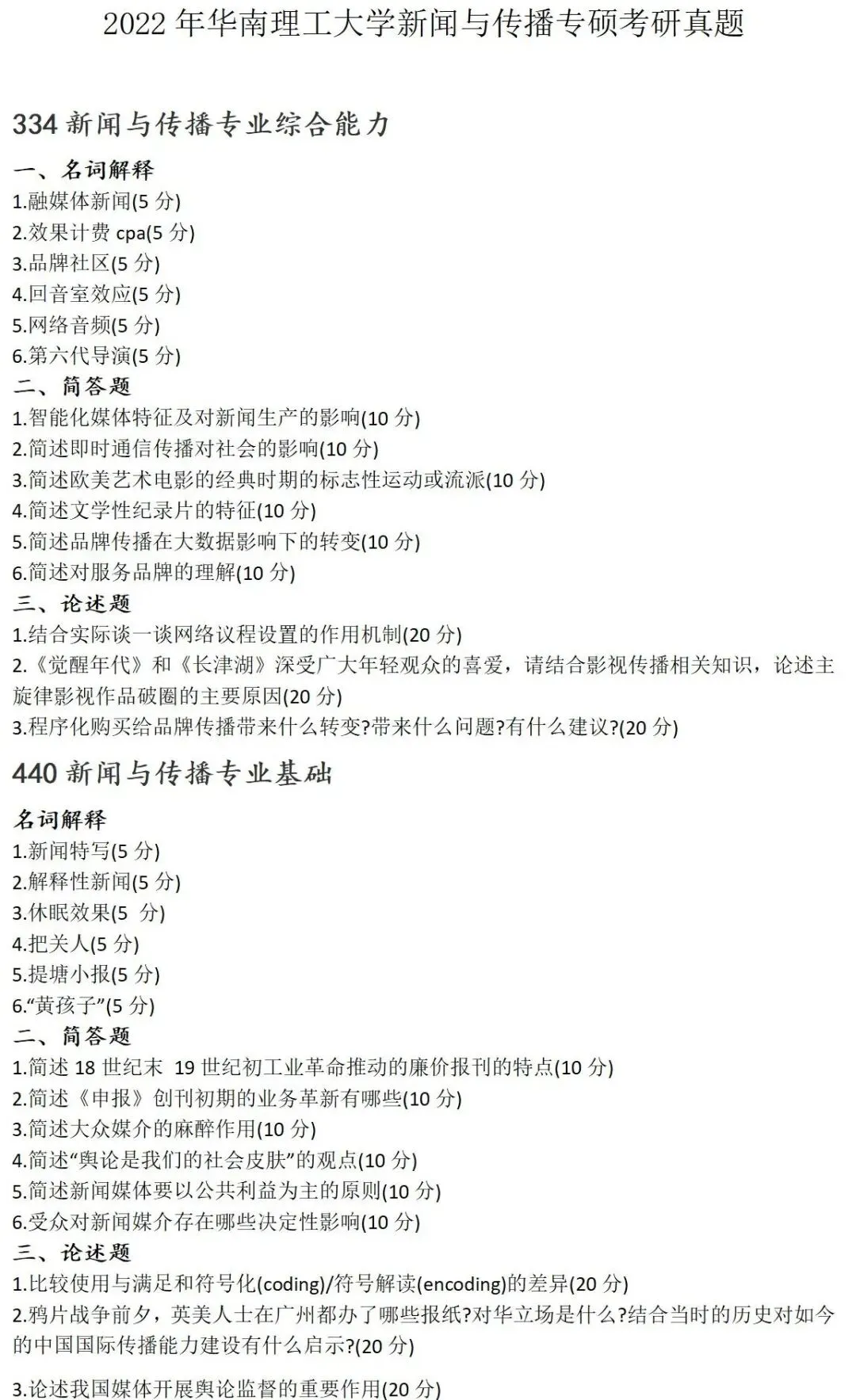 华南理工大学新闻与传播考研真题2022