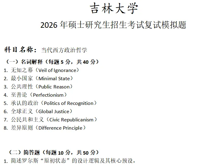 吉林大学当代西方政治哲学考研复试真题模拟含答案