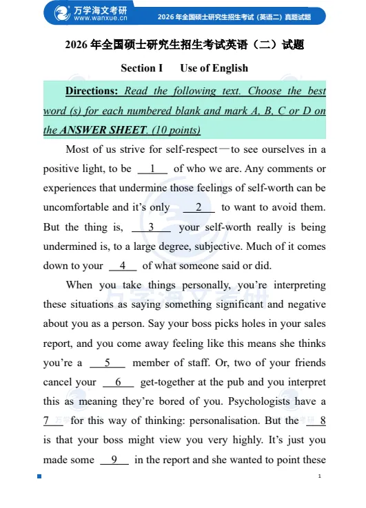 英语一真题+解析