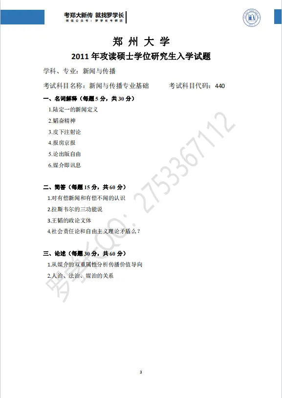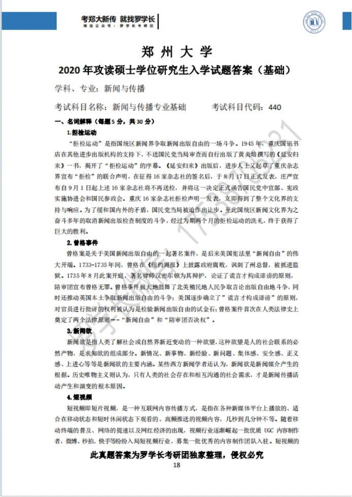 郑大新传考研真题从未对外公布过,市面更是流传着版本不一、鱼龙混杂的内容,极易影响学弟学妹们的复习,为此,我们重新搜集整理了11年以来的真题,之前作为《全套资料》的内容,现在独家首发,史无前例,仅此一处。