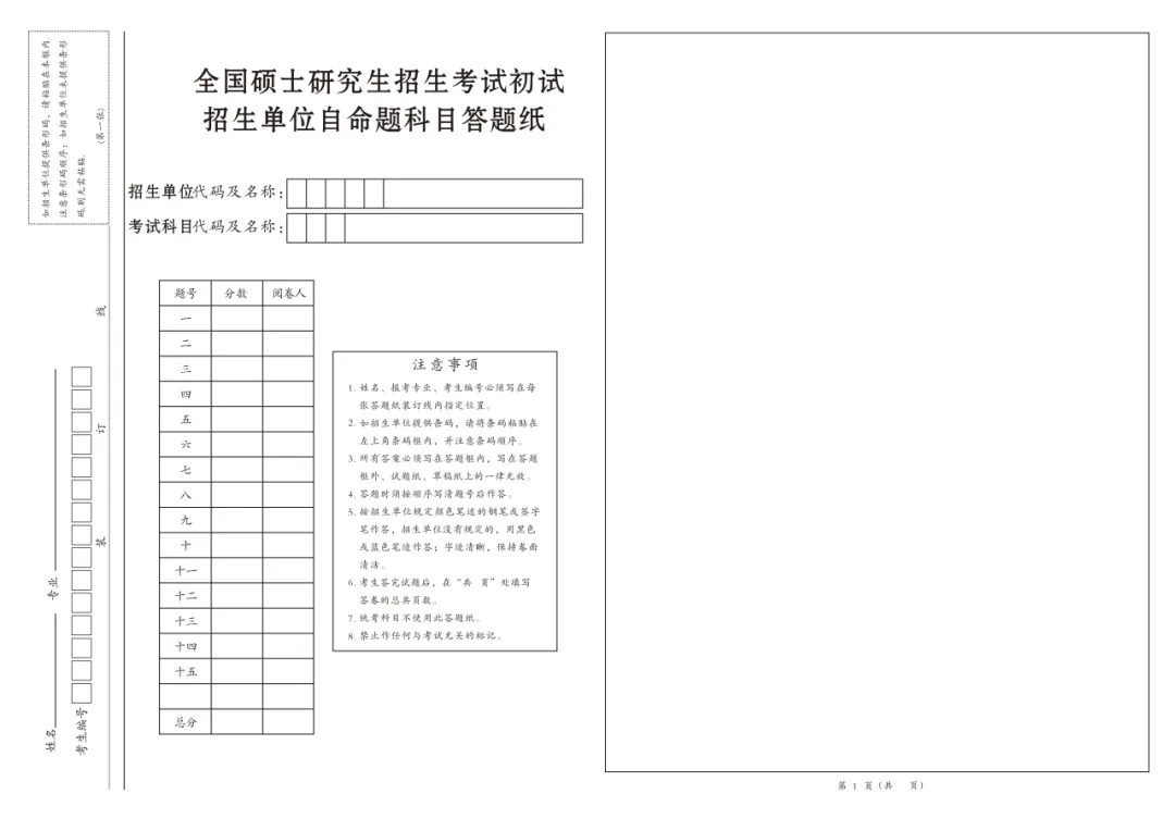 专业课无非就是输入+输出,在你已经把资料背诵了好几遍的时候,就要开始进行答题训练啦,而一份排版清楚、适合打印的专业课答题纸也是必须要有的。上面的这几份答题纸已经按照页数排版好,只需要按照文件名标注的要求,在打印店进行打印就可以啦!