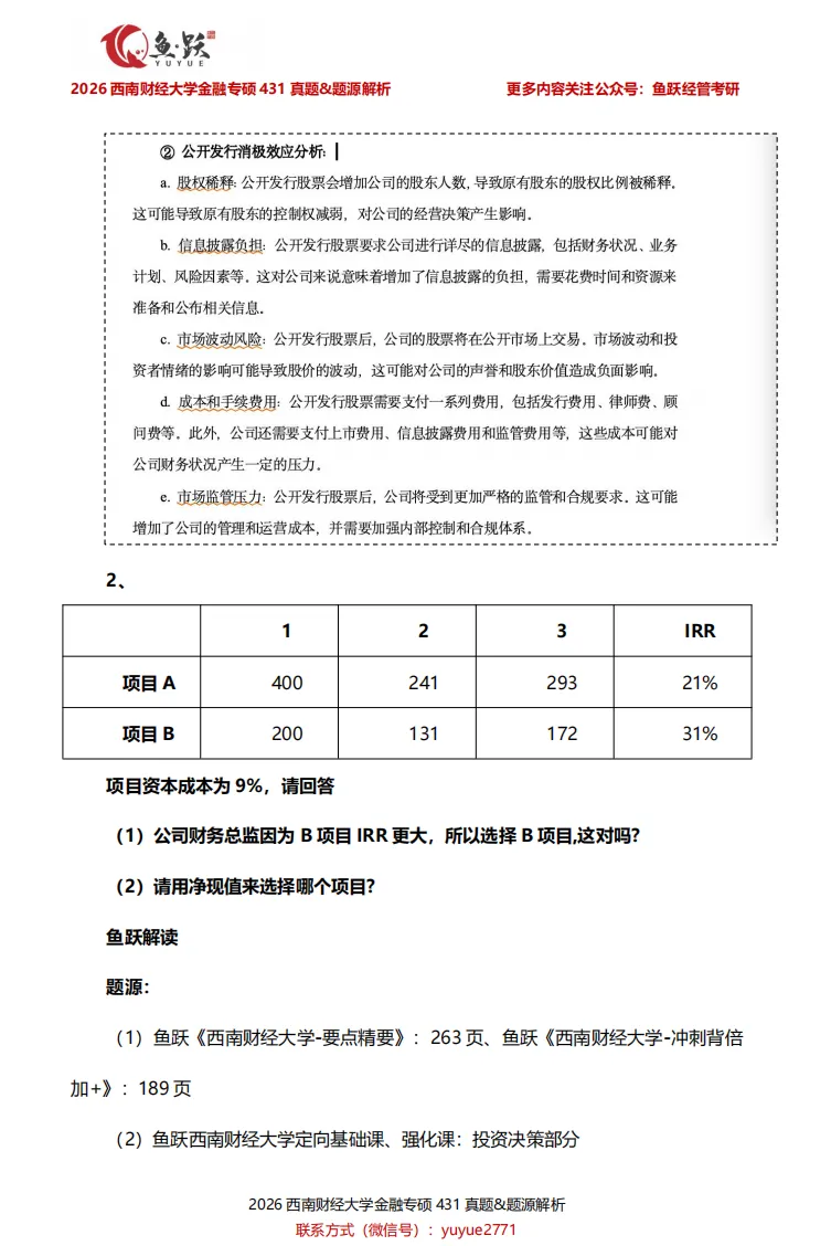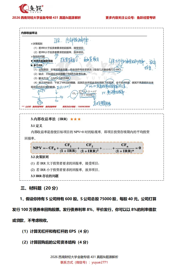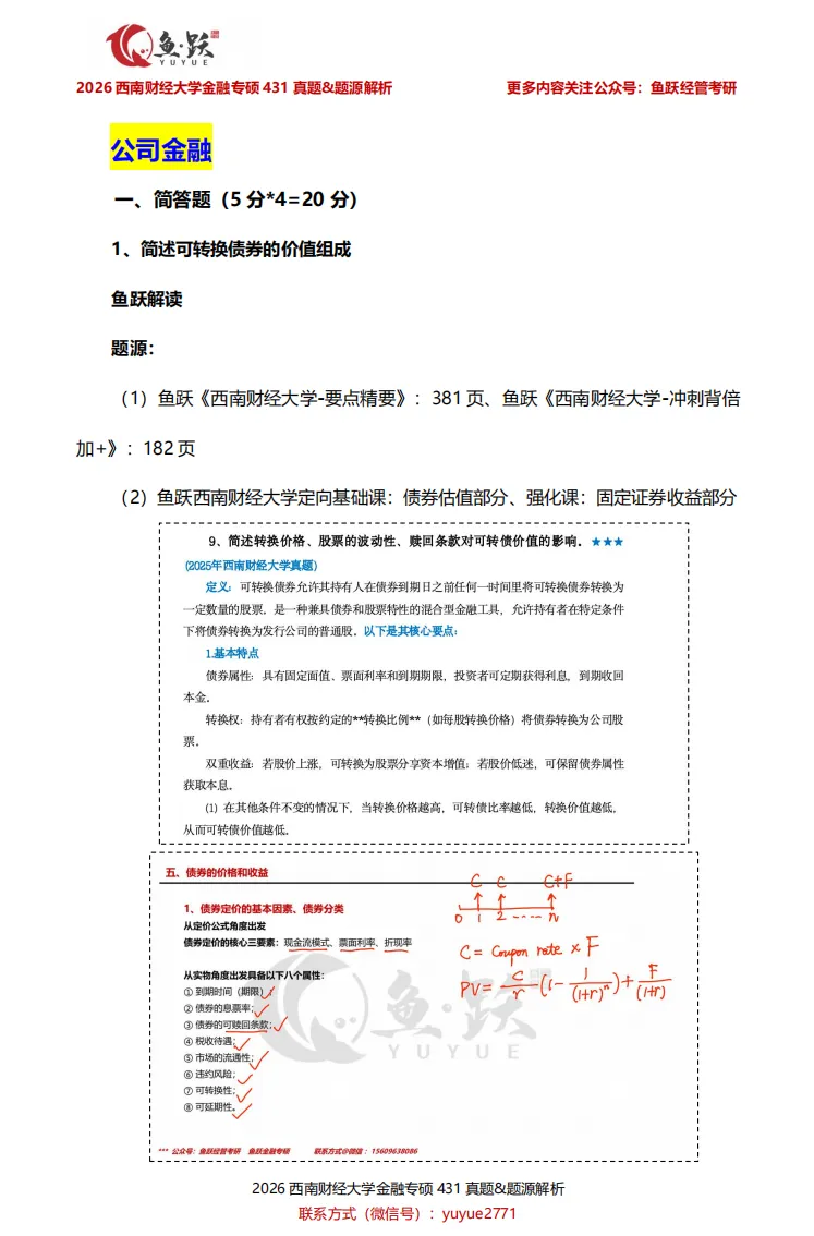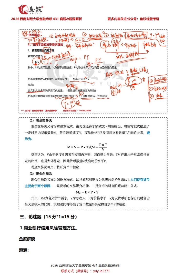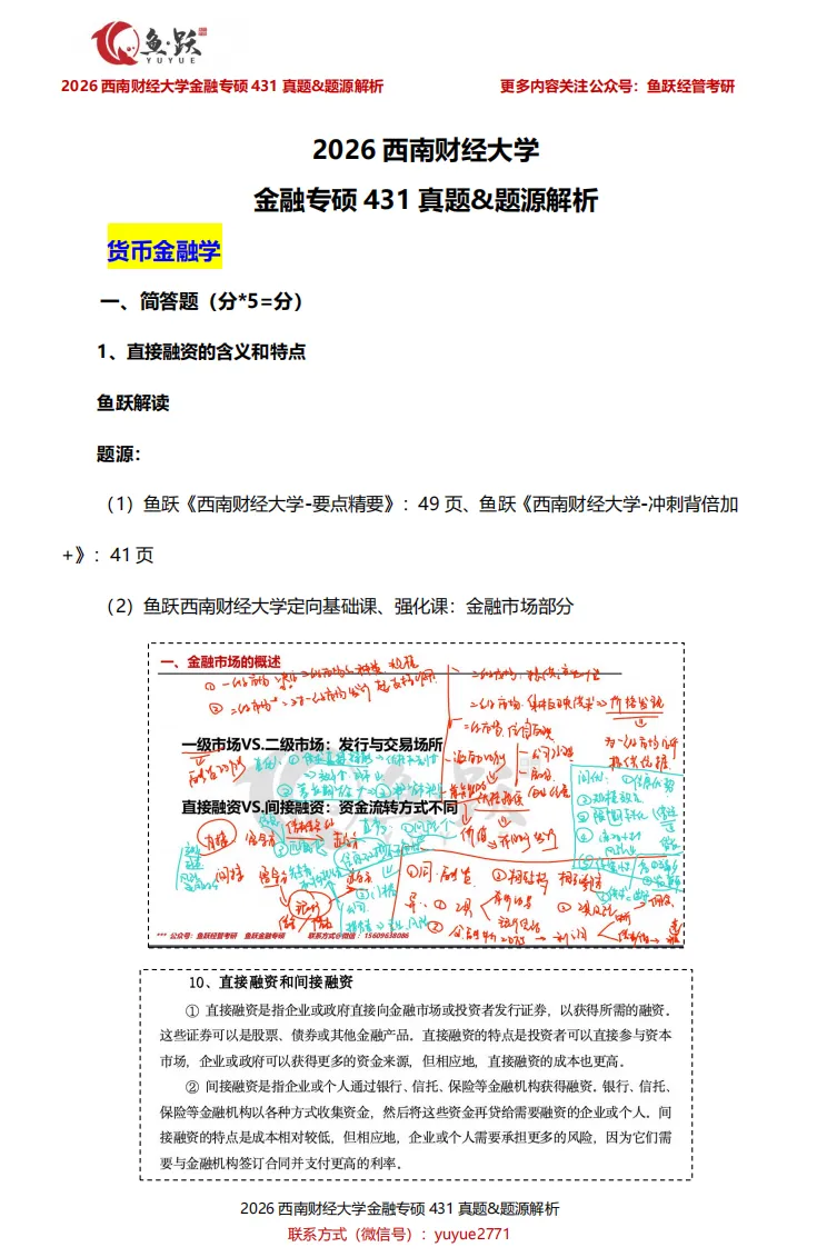 接下来,鱼跃将带领大家逐一剖析西南财经大学金融专硕真题内容,帮助同学们在复盘中获得实实在在的成就感,也为后续备考的学弟学妹们,探明更清晰、更高效的复习方向。