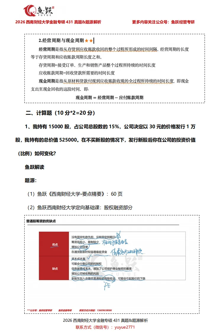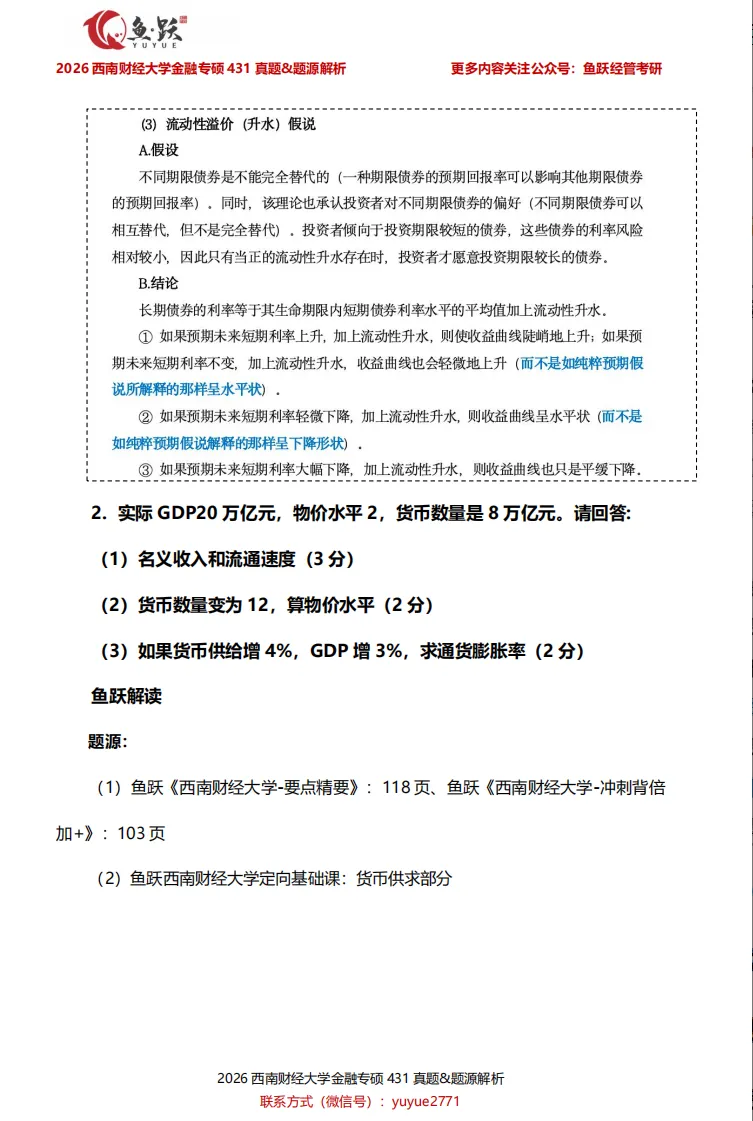 1️⃣ 总体题量:今年西南财经大学金融专硕考试真题题型较去年没有发生变化, 仍然考察简答、计算、论述分析题。