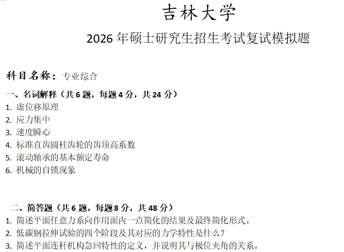 吉林大学专业综合考研复试真题模拟含答案