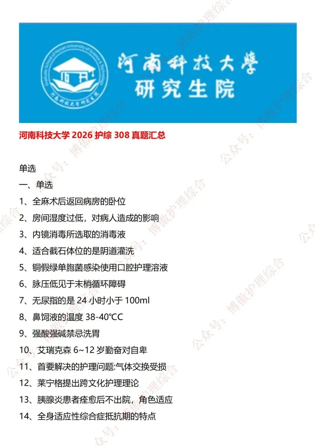 当前位置:首页>考研真题>河南科技大学26护理考研真题回忆
