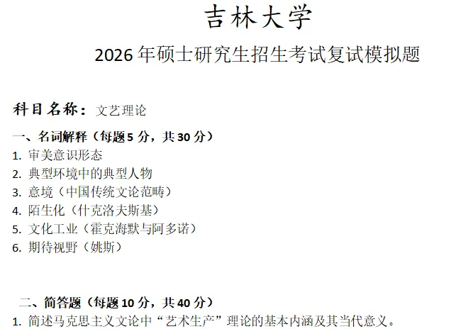 吉林大学文艺理论考研复试真题模拟含答案