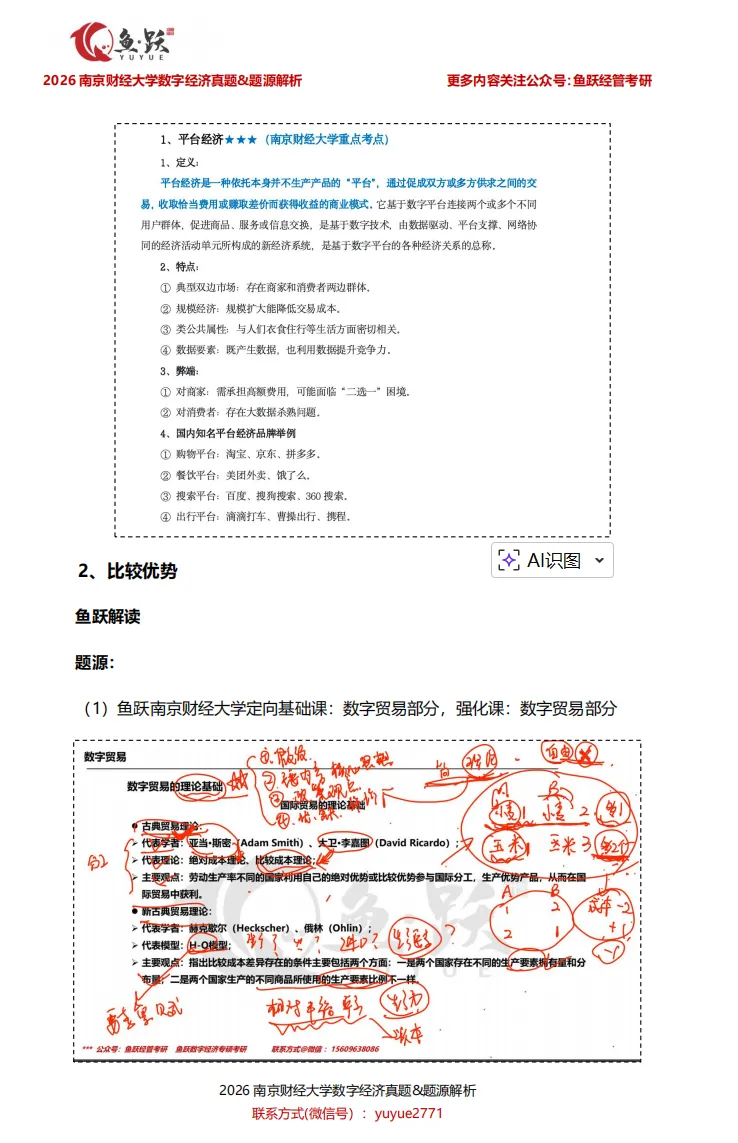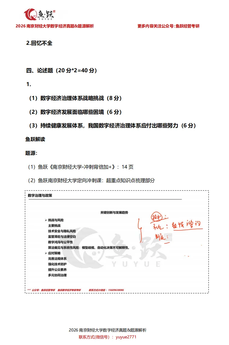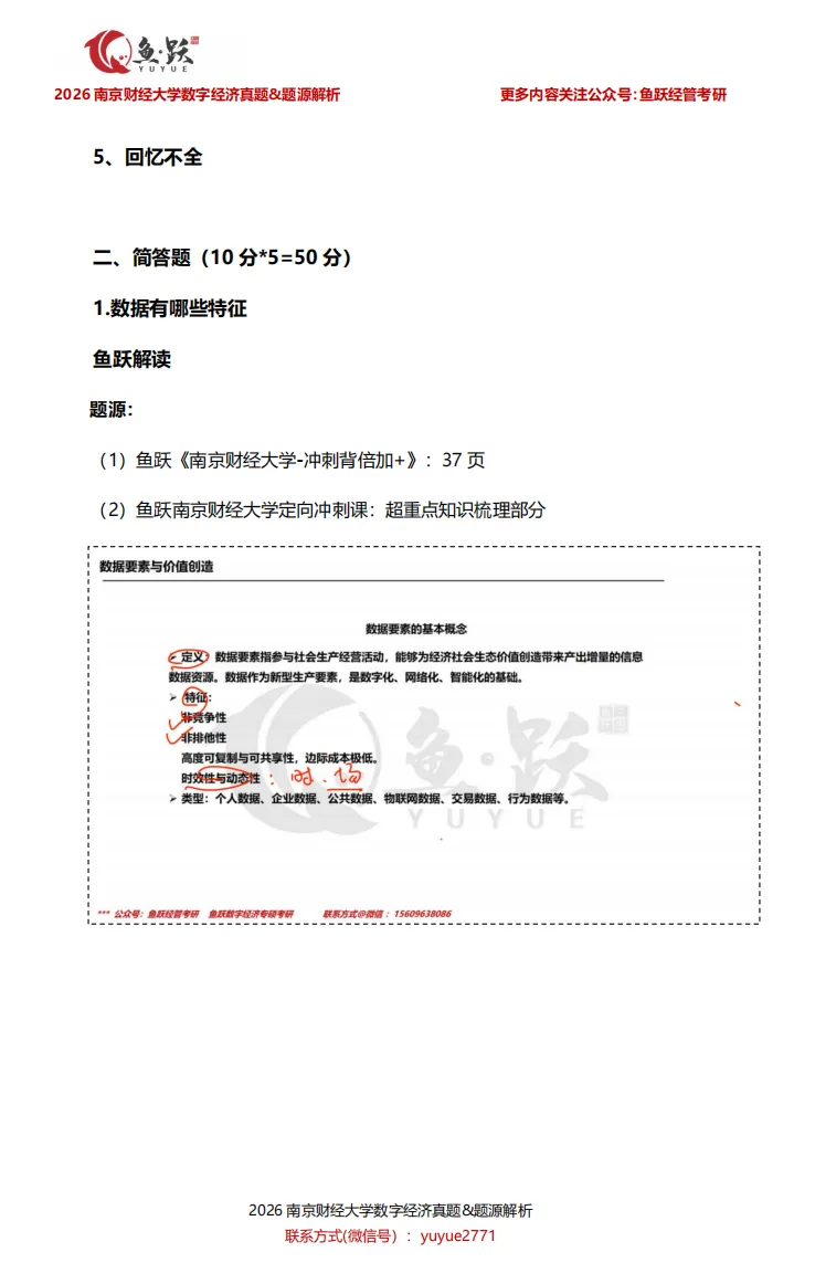 接下来,鱼跃将带领大家逐一剖析南京财经大学数字经济真题内容,帮助同学们在复盘中获得实实在在的成就感,也为后续备考的学弟学妹们,探明更清晰、更高效的复习方向。