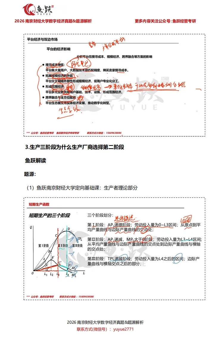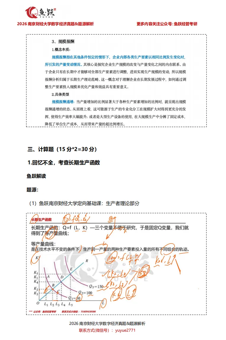 2️⃣ 题目难度变化:相比于去年的考题来说,今年数字经济考题难度较为简单,名词解释、简答题大部分为数字经济基础知识点, 难度不高; 而数字经济的论述题相比去年来说需要进行更加深度的分析, 因此进一步考察了学生的综合分析能力以及结合案例进行分析的能力, 但这些题目在冲刺的热点知识课当中强调过如何进行作答, 因此整体难度正常; 反观微观经济学部分则主要考察经济主体行为, 如生产的三阶段, 这些属于微观经济基础知识点, 需要深入分析的难度不大,因此整体来看:今年南京财经大学的数字经济专业课考察内容难度没有上升, 仍然以基础知识点为考察重点, 整体来看难度正常。