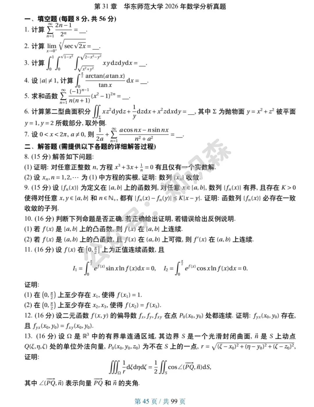 2026年华东理工大学数学分析考研真题及详细参考解答