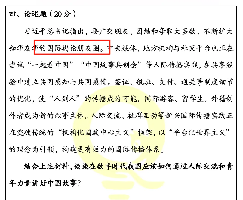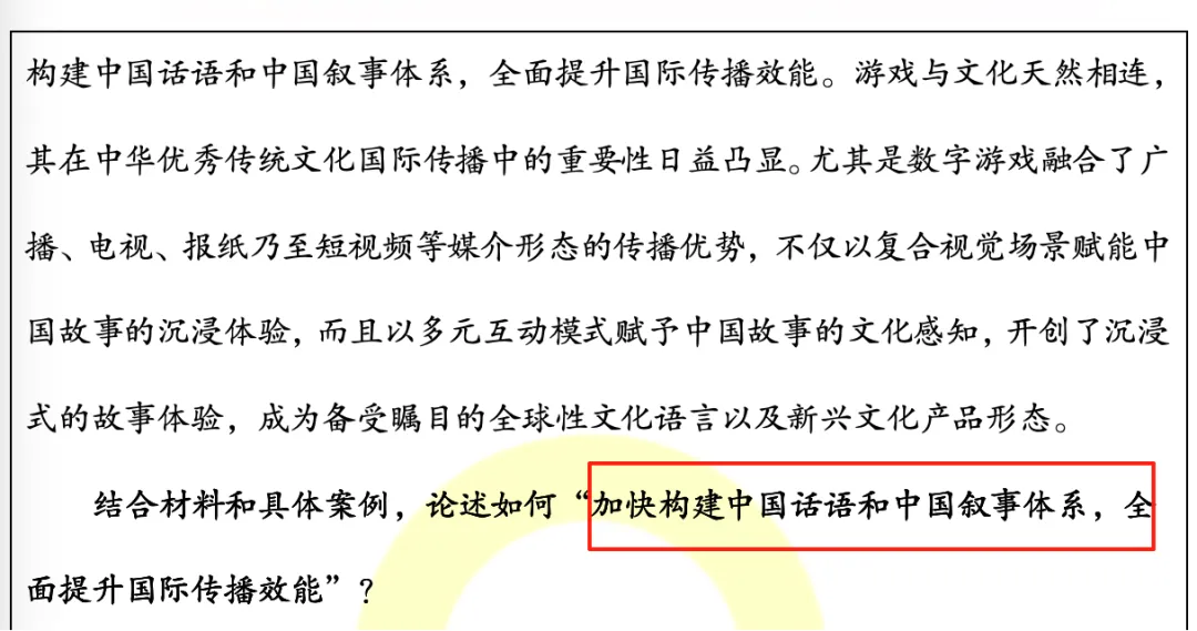 三段材料:一则关于国际传播的政策,一则关于黑神话悟空、哪吒等出圈对外传播的文化作品,一则关于中华文明对世界的影响。(一模押中)