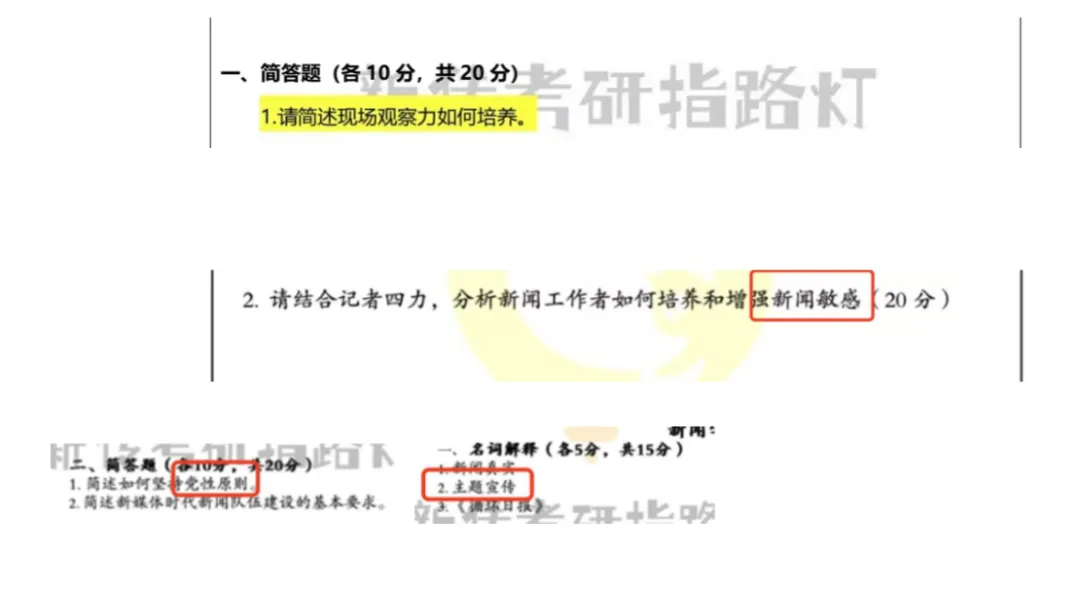 这两道题属于基础之基础,都是书上第十二章、第十四章的原题,如果有不太确定的小宝可以翻书查阅一下哦~根据模拟考的情况和真题来看,对于新闻采访与写作书本的考察主要集中在简答题,希望更多的小宝重视起来,不要在基础题目上丢分哦~