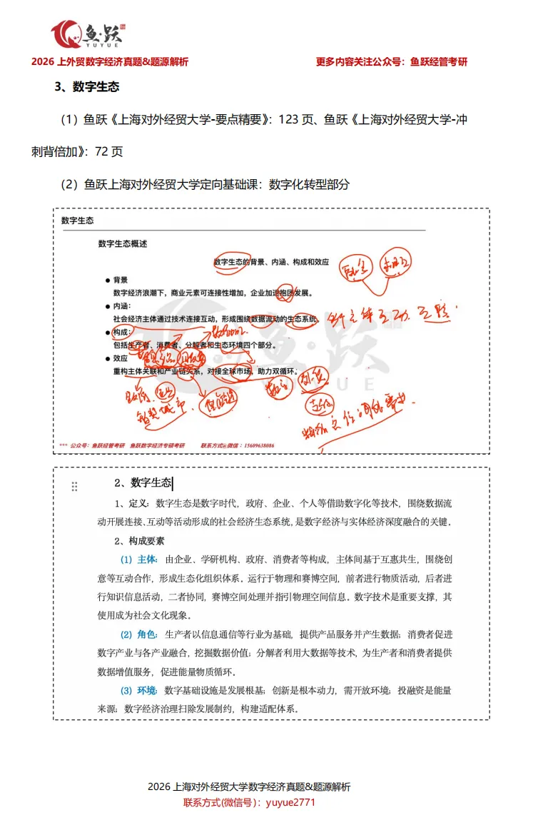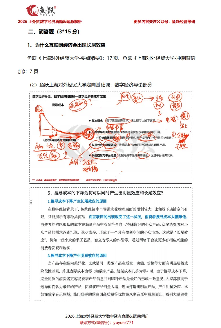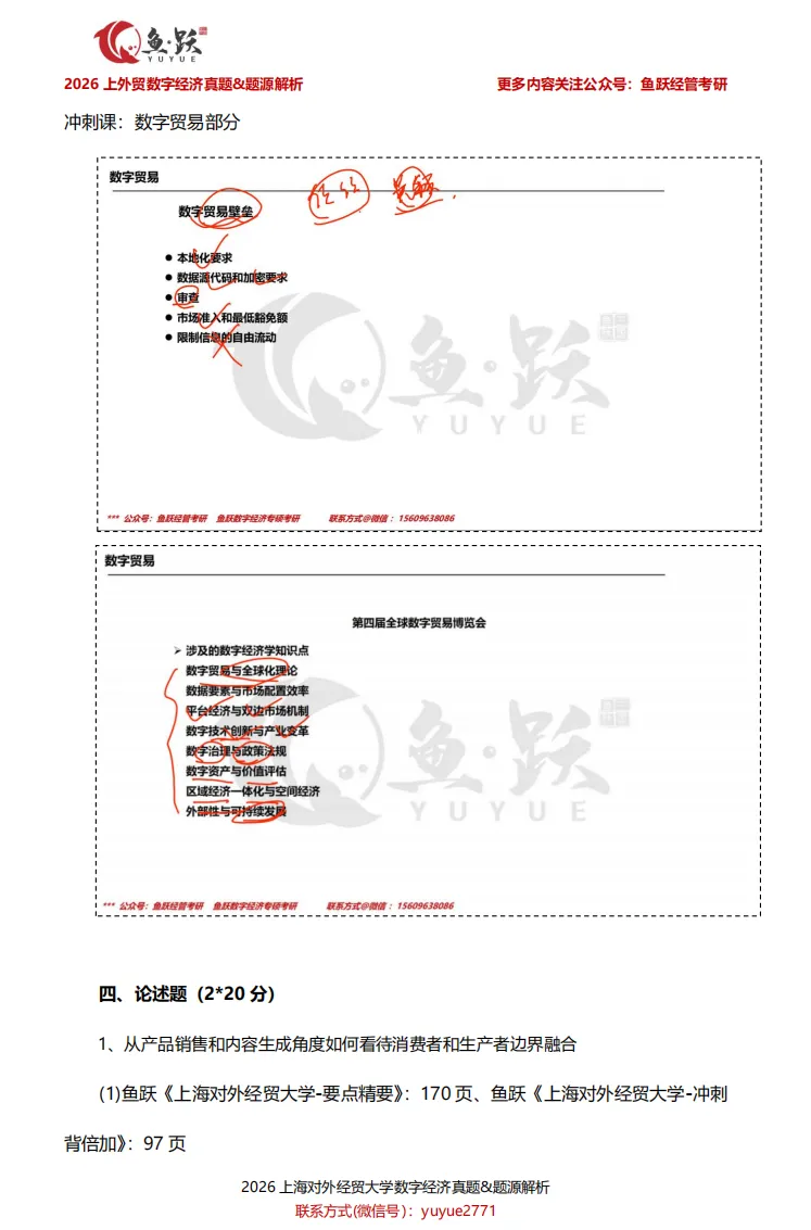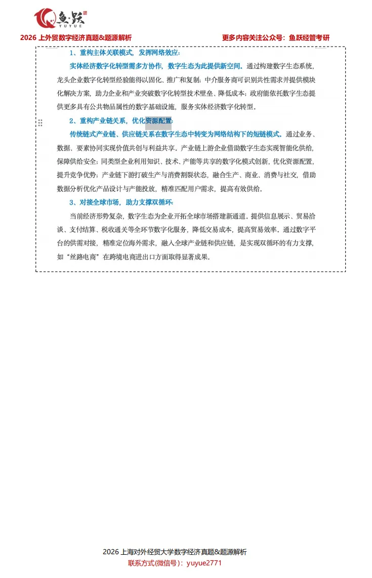 接下来,鱼跃将带领大家逐一剖析上海对外经贸大学数字经济真题内容,帮助同学们在复盘中获得实实在在的成就感,也为后续备考的学弟学妹们,探明更清晰、更高效的复习方向。