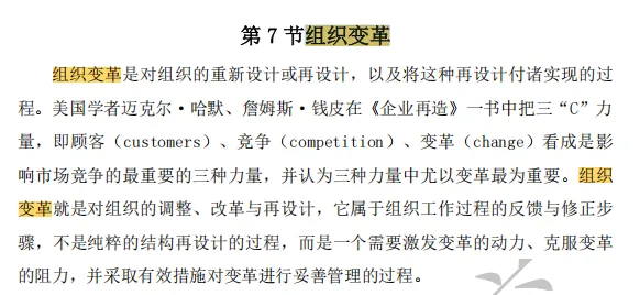 2、组织变革该考点在红宝书资料(63页)课程讲义(重点班第九课时)均有提到