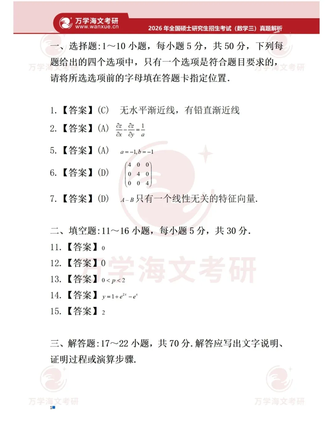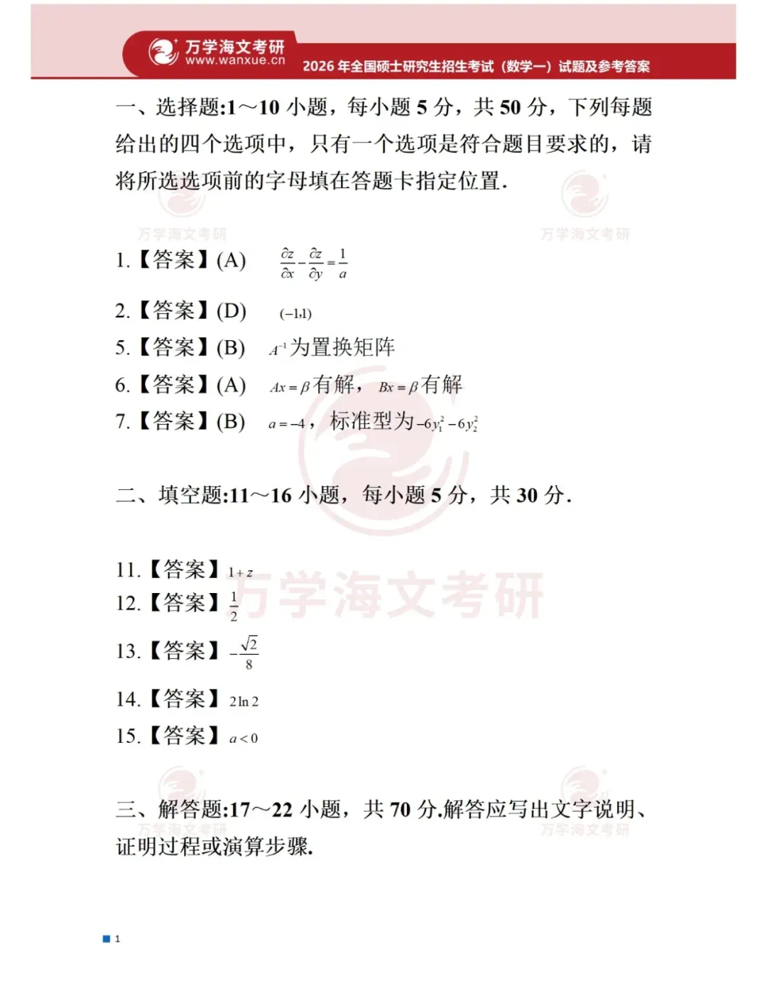 2026考研初试今天正式结束了,祝大家一战成硕!都能考上自己心仪的大学!这我给大家整理了参考答案: