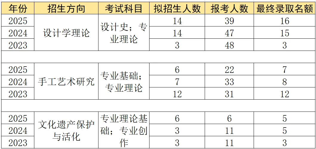 设计理论类方向包括“设计学理论”“手工艺术研究”“文化遗产保护与活化”三个专业方向。其中,“设计学理论”“手工艺术研究”属于设计学(140300)学科,为全日制学术型研究方向,“文化遗产保护与活化”属于文物(145100)学科,为全日制专业型研究方向。