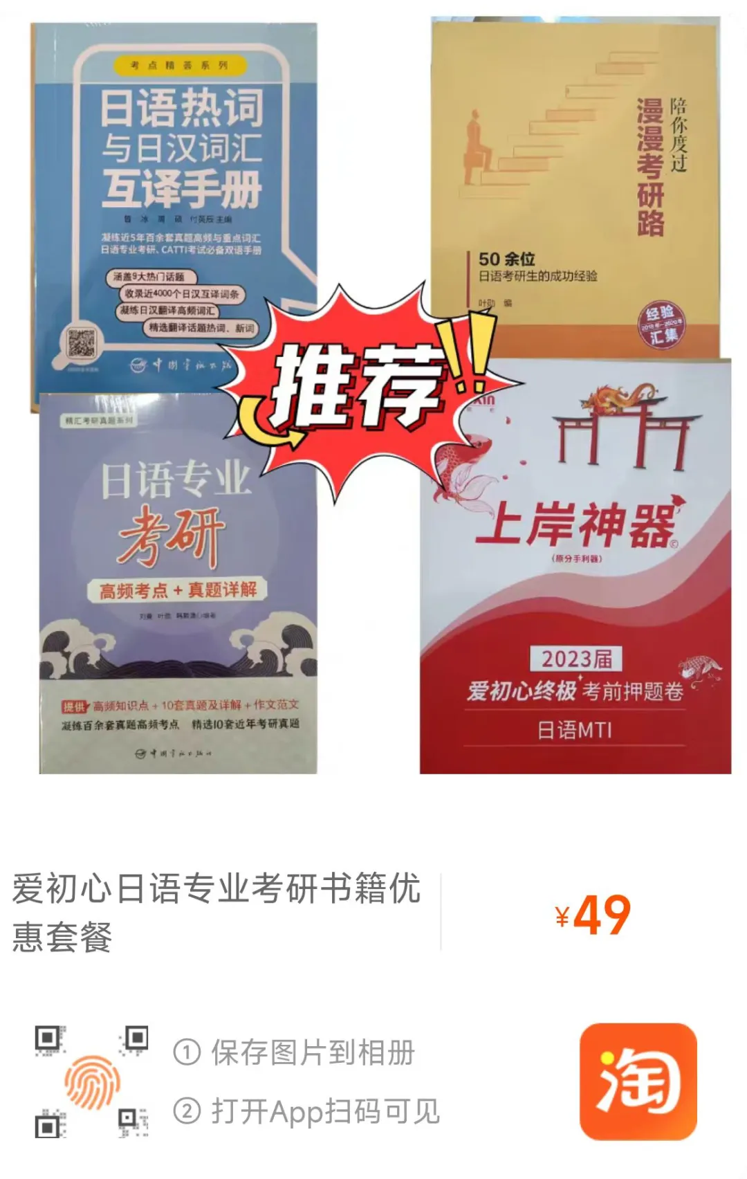 另外,欢迎大家持续关注我们公众号,我们会不定期整理一些优惠图书套餐,以最高的性价比帮助大家备考新一年的日语专业考研。