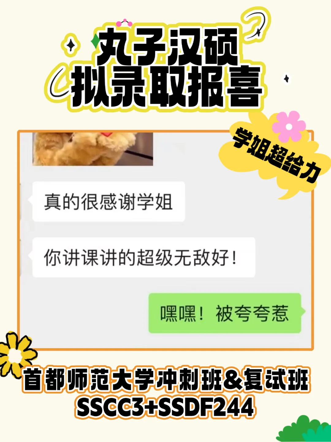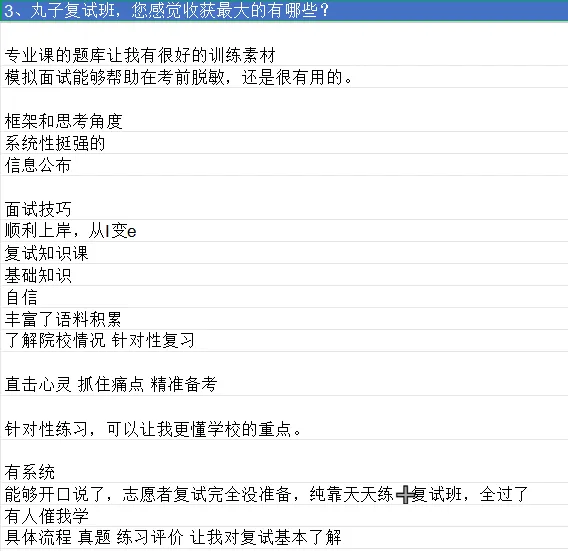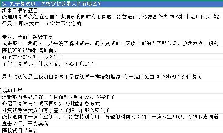 丸子的专业课真题面试训练营经过多年打磨,已经非常成熟,通过高强度的实战训练,能有效提升大家的面试能力,是丸子复试班的“杀手锏”。