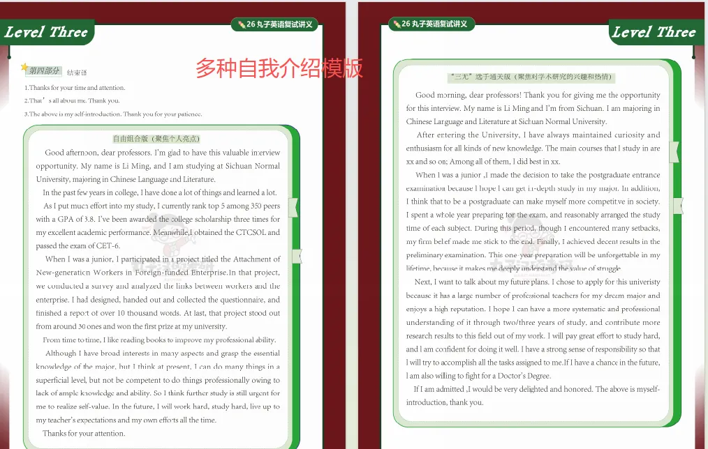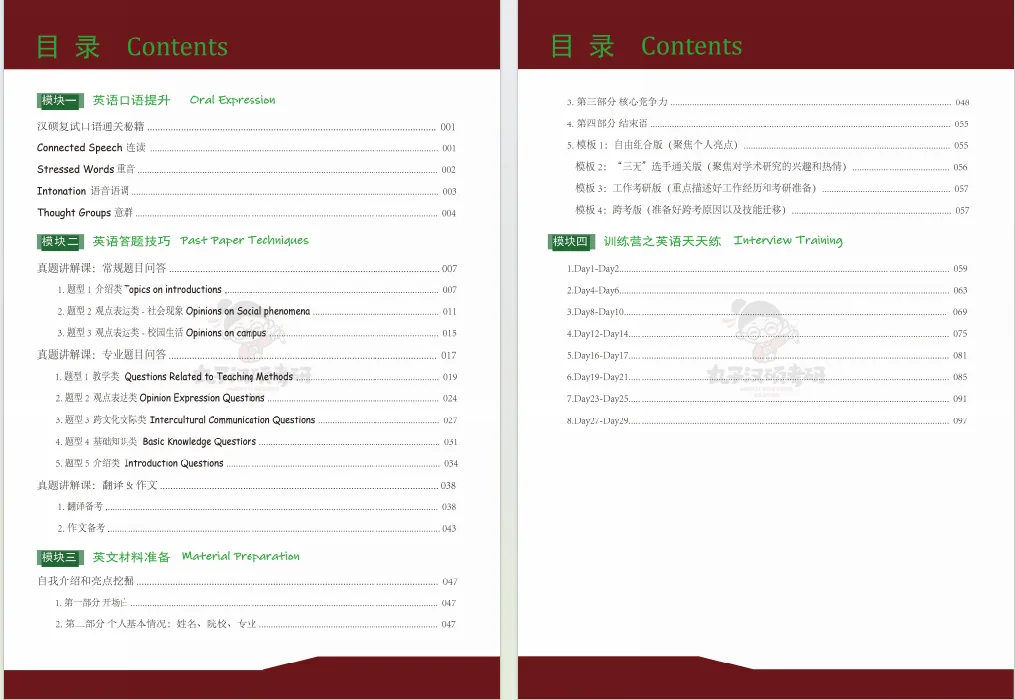 英语复试班的三大模块同样涵盖了英语复试中我们应该掌握的内容和需要做好的准备,是大家搞定英语复试,夯实基础能力的关键底气。