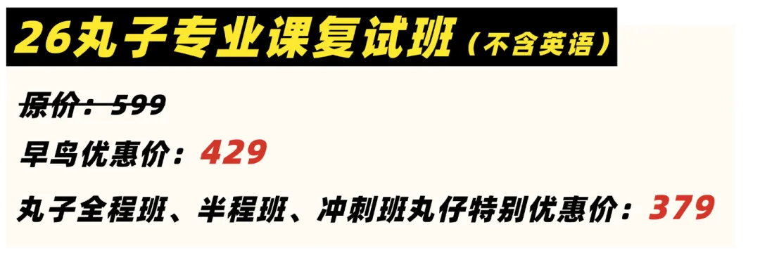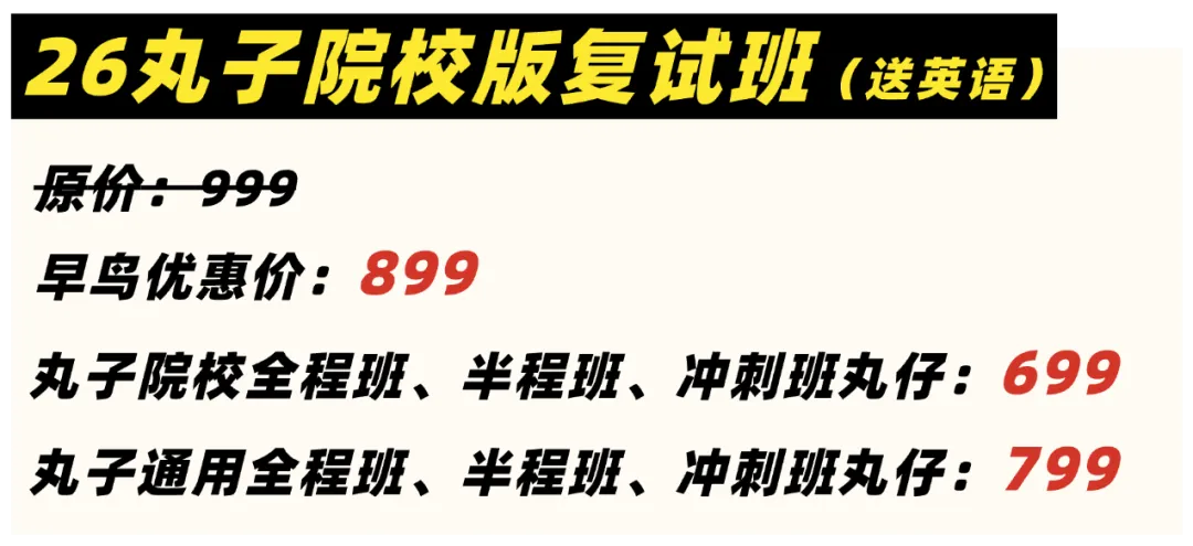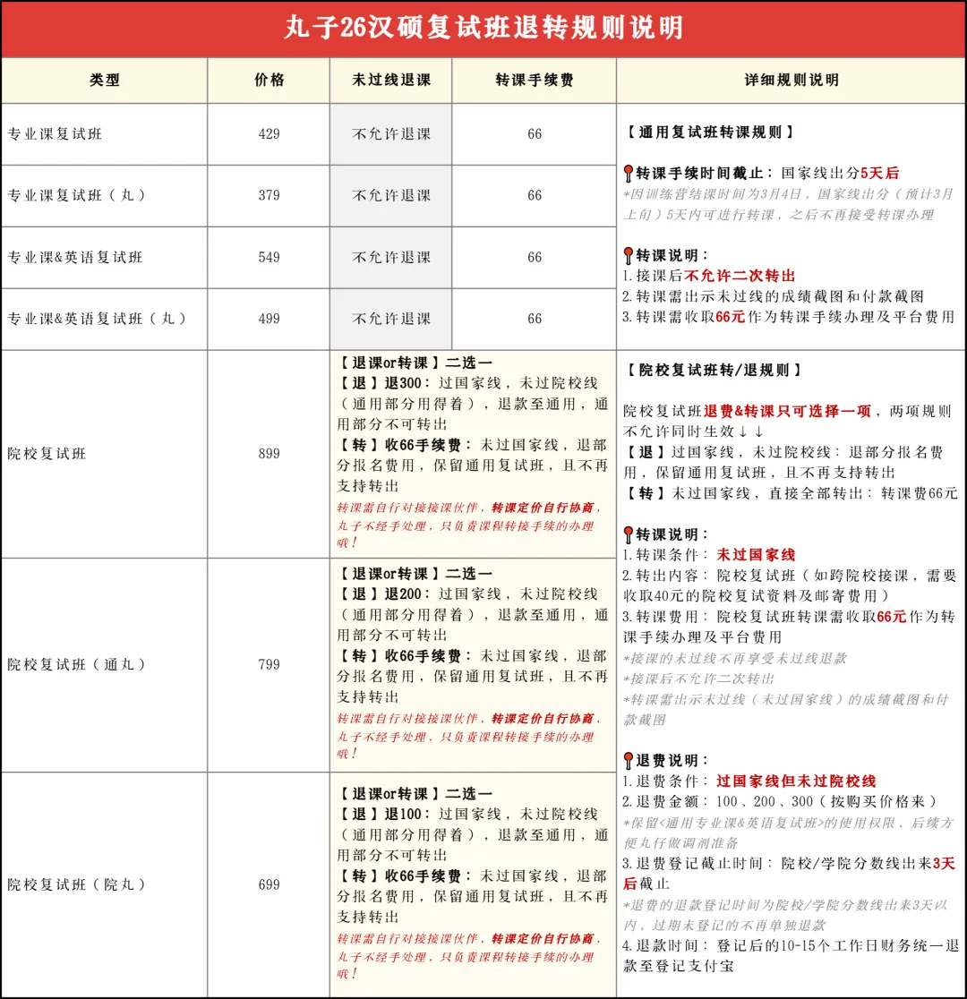 ■【通用复试班】顺利入班后不接受退课,但若有转课需求,丸子可协助转课,收转课手续费66元。(丸子仅做转课手续办理,具体转出费用需丸仔同接课伙伴对接)