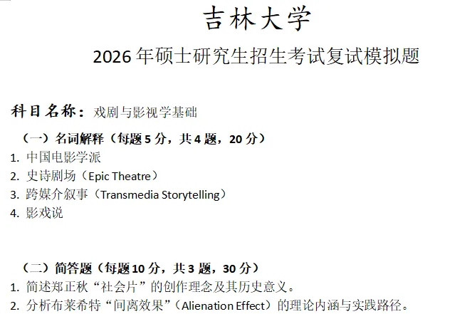 吉林大学戏剧与影视学基础考研复试真题模拟含答案