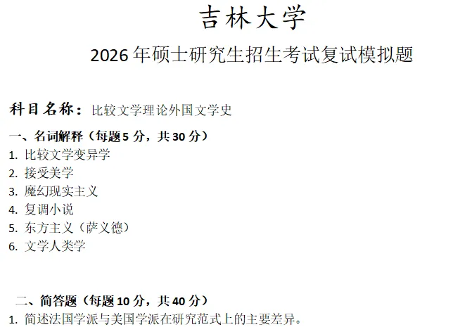 吉林大学比较文学理论外国文学史考研复试真题模拟含答案