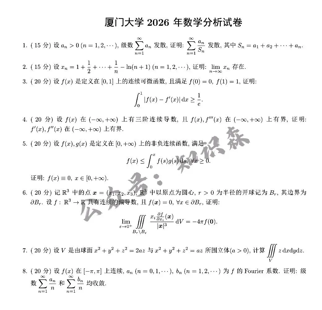 2026年北京工业大学数学分析考研真题及详细参考解答