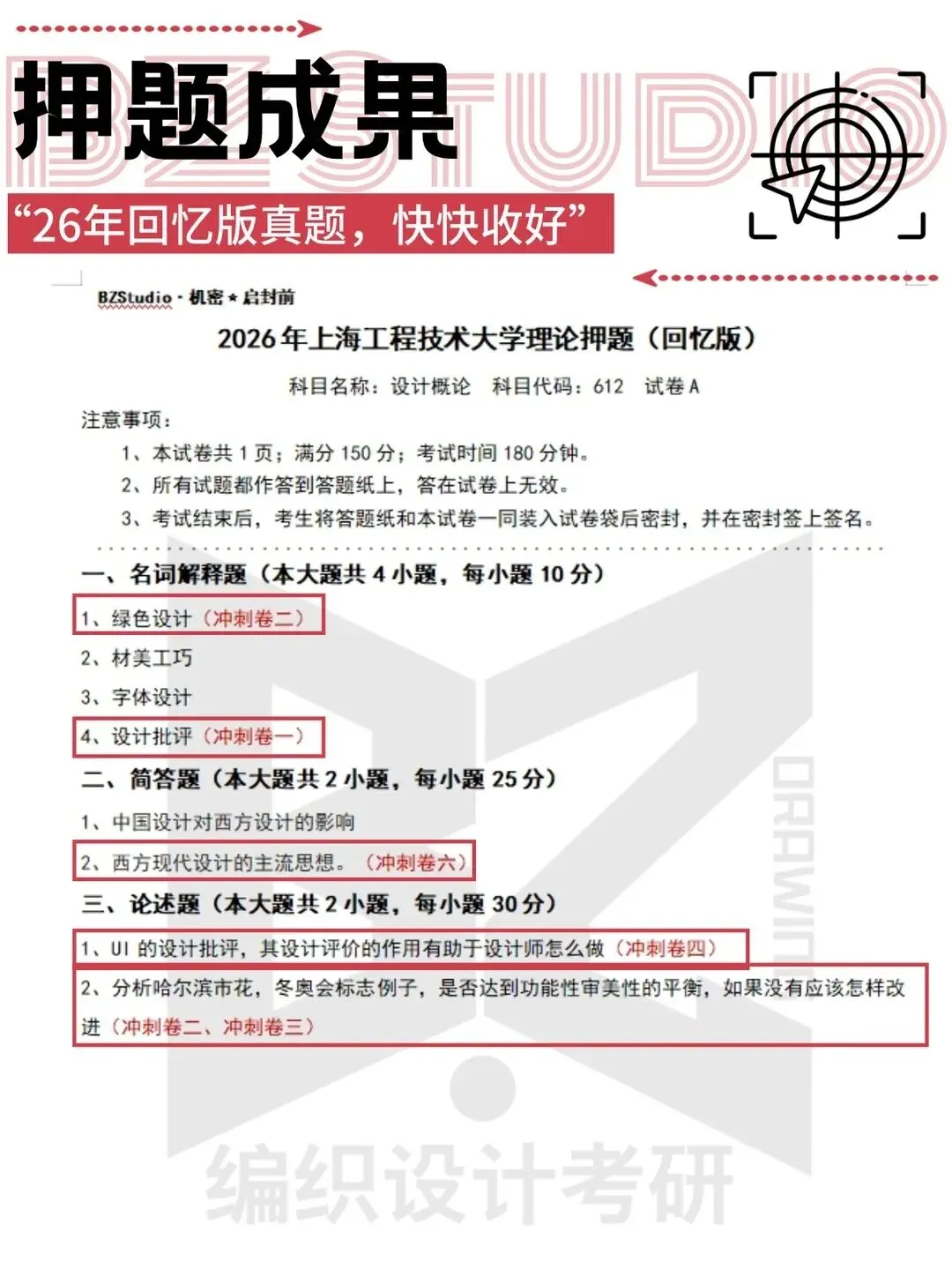 🎯上海工程技术大学 理论真题押中105分💥 手绘押中hi形式和方向