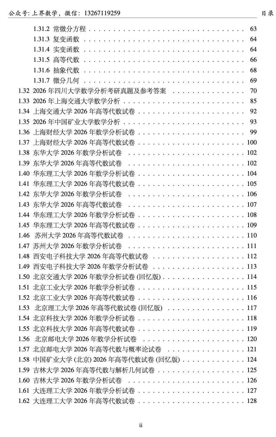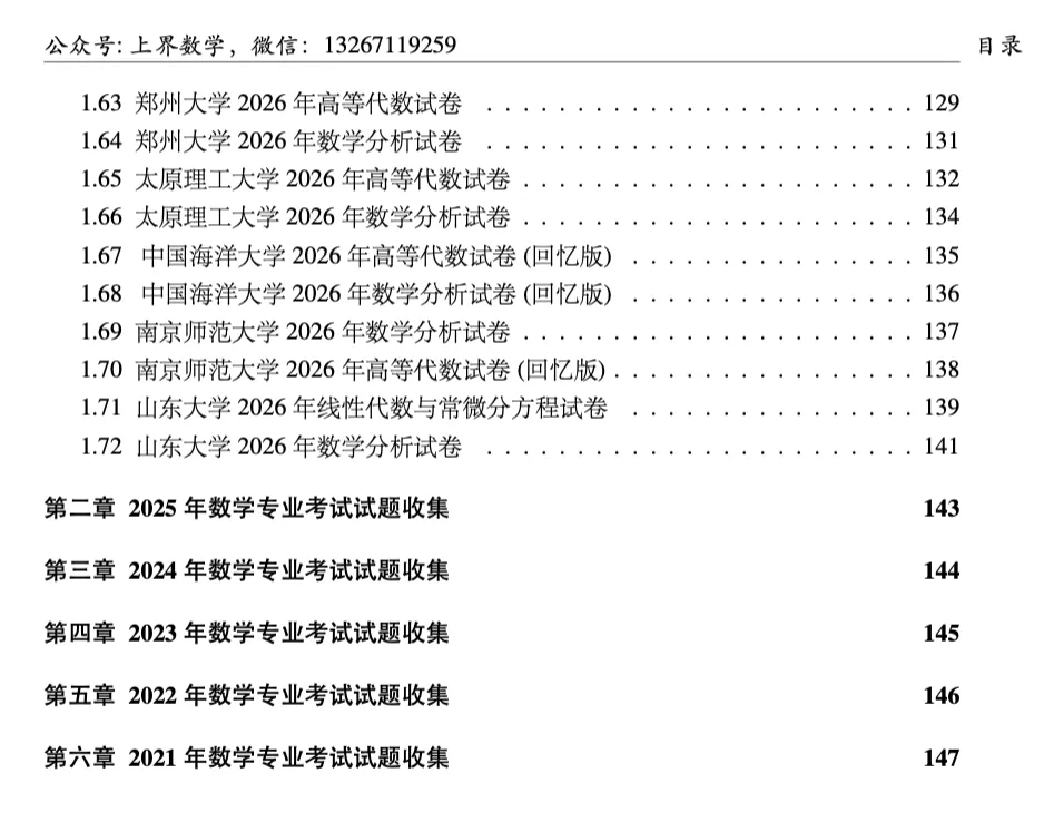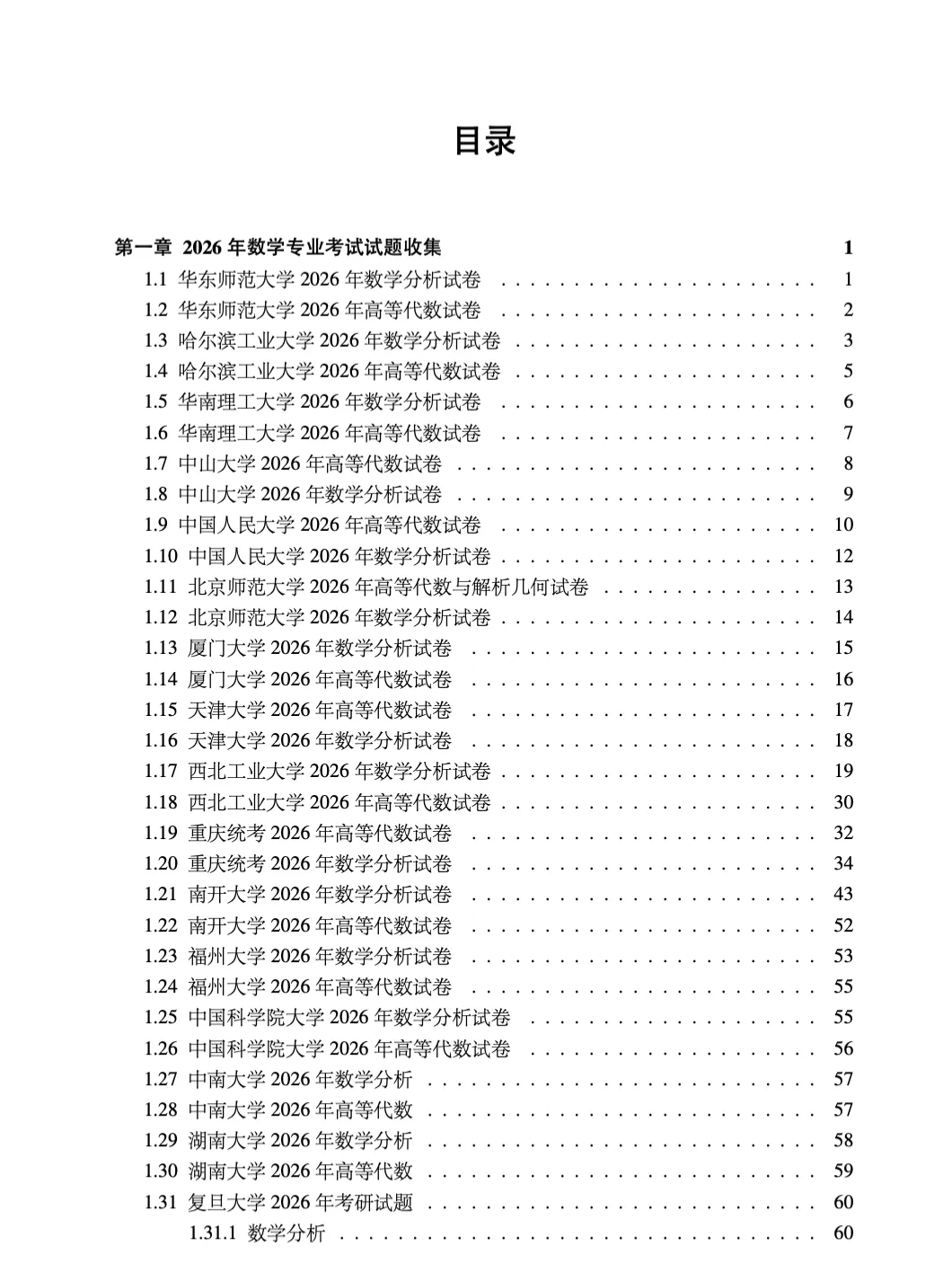 这段时间我在收集整理2026年各大高校的数学考研真题(数分+高代),目前已覆盖了几十所院校。未来收集整理更多资料。资料整理中,我查阅了包括“数学考研李扬”、“八一数学竞赛考研”等在内的多个优秀公众号,并严谨地标注了所有试题来源。在此基础上,我也尽绵薄之力,为大家提供了详细的试题解答。