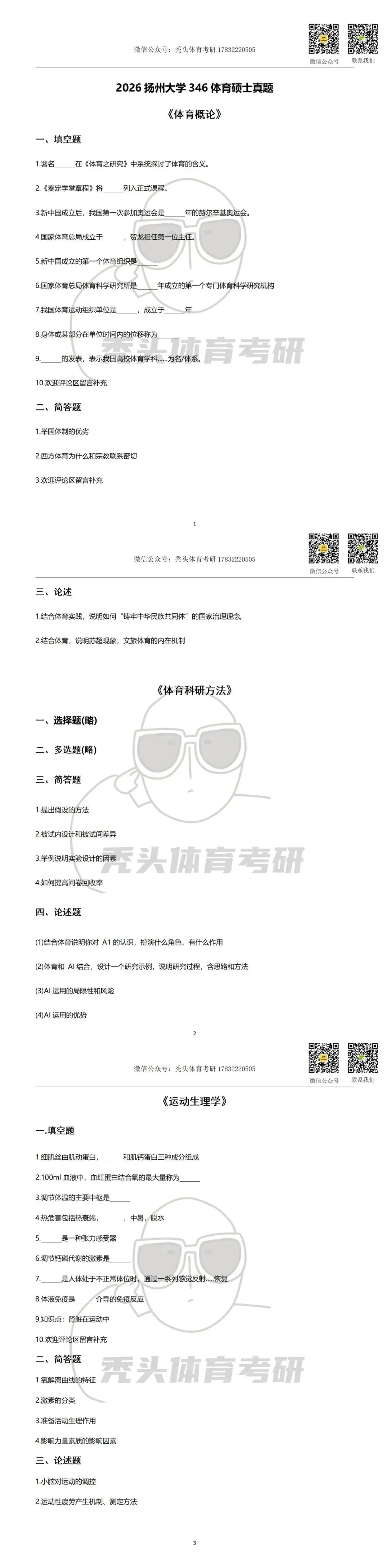 >26体育考研真题丨扬州大学346体育综合初试真题(2026)