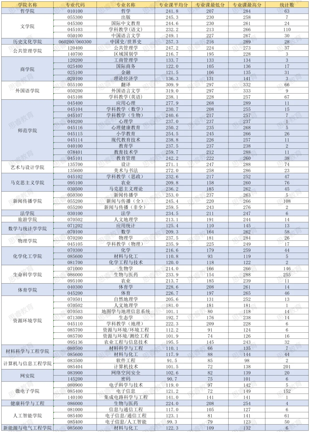 以上专业,双专业课平均分几乎都在220分以下,要么改卷很严格要么题目难度较高,如资环学院农业工程与信息技术平均分只有195.5,生物学214.0;
