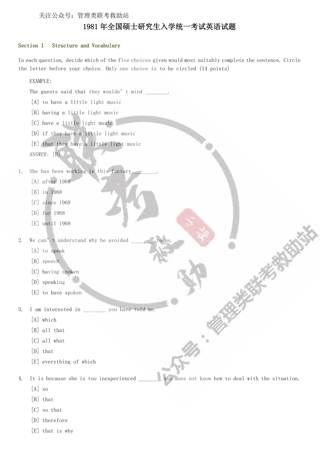 1984年历年考研英语真题+答案集合(无解析)