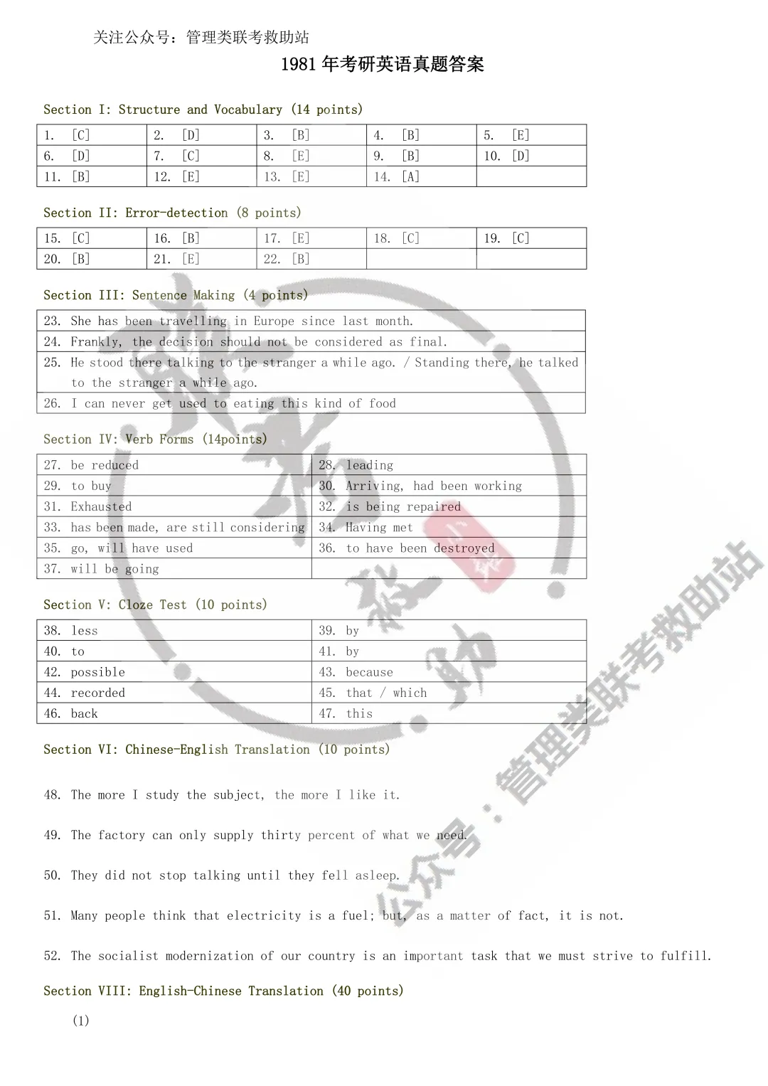 1981年历年考研英语真题+答案集合(无解析)