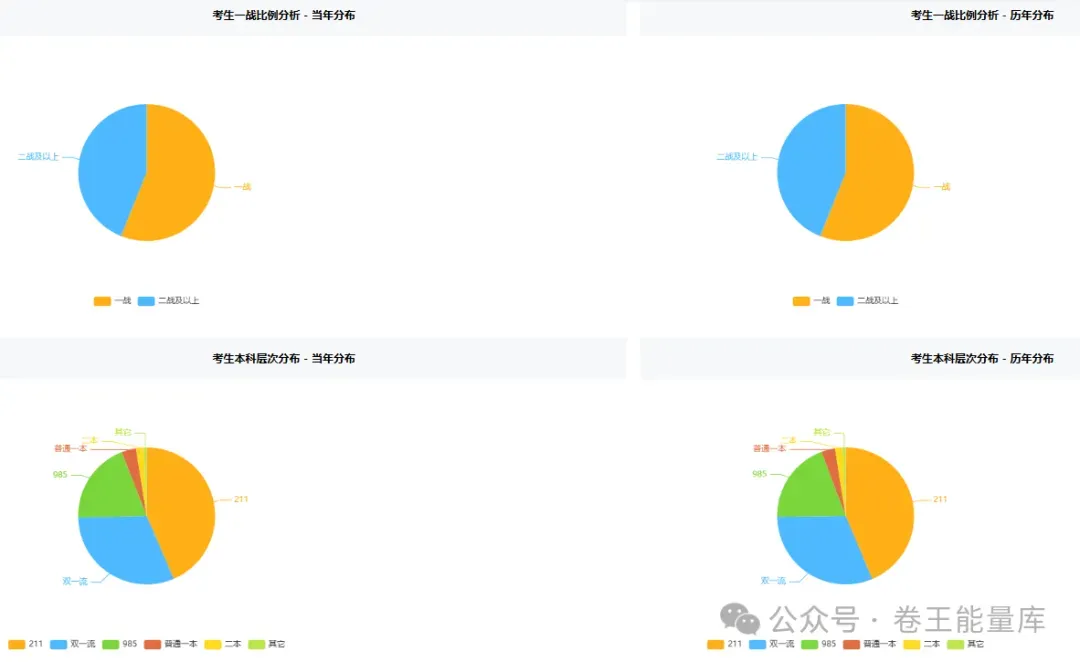 👉🏻以上数据可分析:备考阶段:以“一战考生”为绝对主力,备考周期集中在应届阶段;2. 本科背景:报考者以211/双一流/985等中高端院校的本科生为主,普通本科生源占比极低。