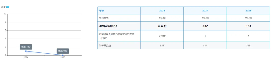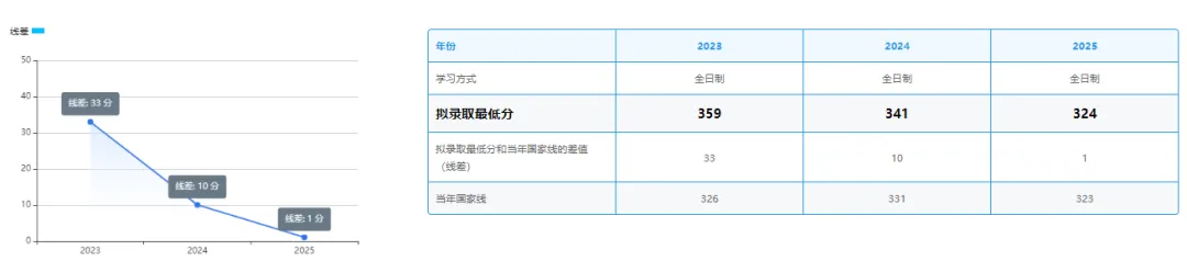 👉🏻根据近年的进复试最低分的变化,本硕士点的进复试最低分相对国家线呈下降趋势