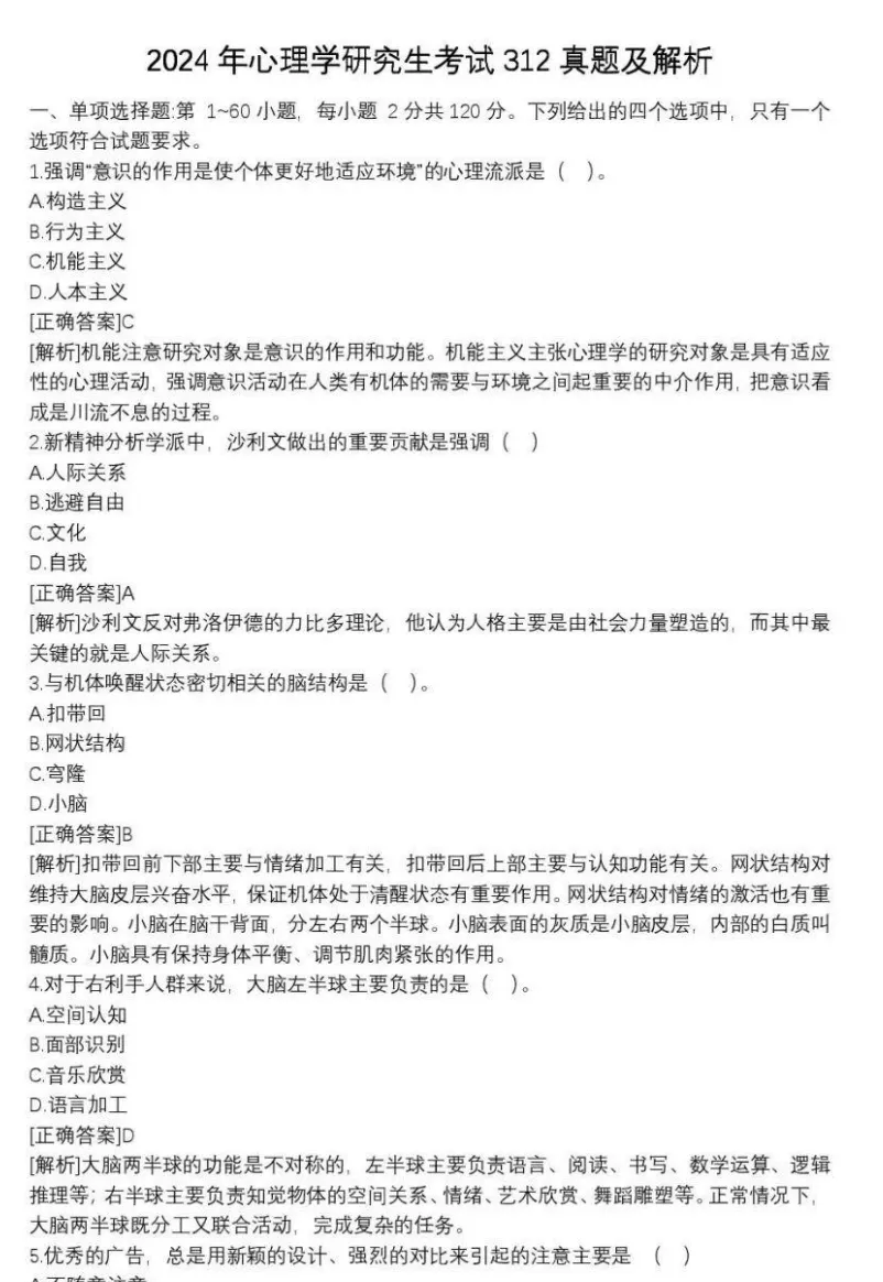 考研专业课-312心理学专业课综合历年真题(包括2010-2024年word版真题和答案)