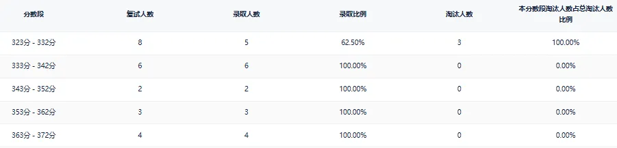 政治定为(68 分),对应第一志愿录取分数分布分数段为 “68-72 分”(该段有 8 人,是政治人数最多的分数段),英语推荐(55 分)对应分数段为 “55-59 分”(该段有 7 人,是英语人数最多的分数段),属于英语的主流分数区间。专业课一推荐112 分,是专业课一的中等偏上水平。专业课二推荐(95 分)是专业课二的主流分数水平,达成难度适中。初试总成绩推荐(330 分),属于该硕士点一志愿的主流进面分数范围。该专业考上简单,考高分需要咱多下功夫,尽管25年招收人数不够,院校有调剂。但是避免第二年扎堆报考,以及专业课有压分现象,咱还是要尽量取高分稳妥上!结合院校初试占70%的初试比,只要咱初试稳妥过,复试不出现什么大问题,基本上稳啦!