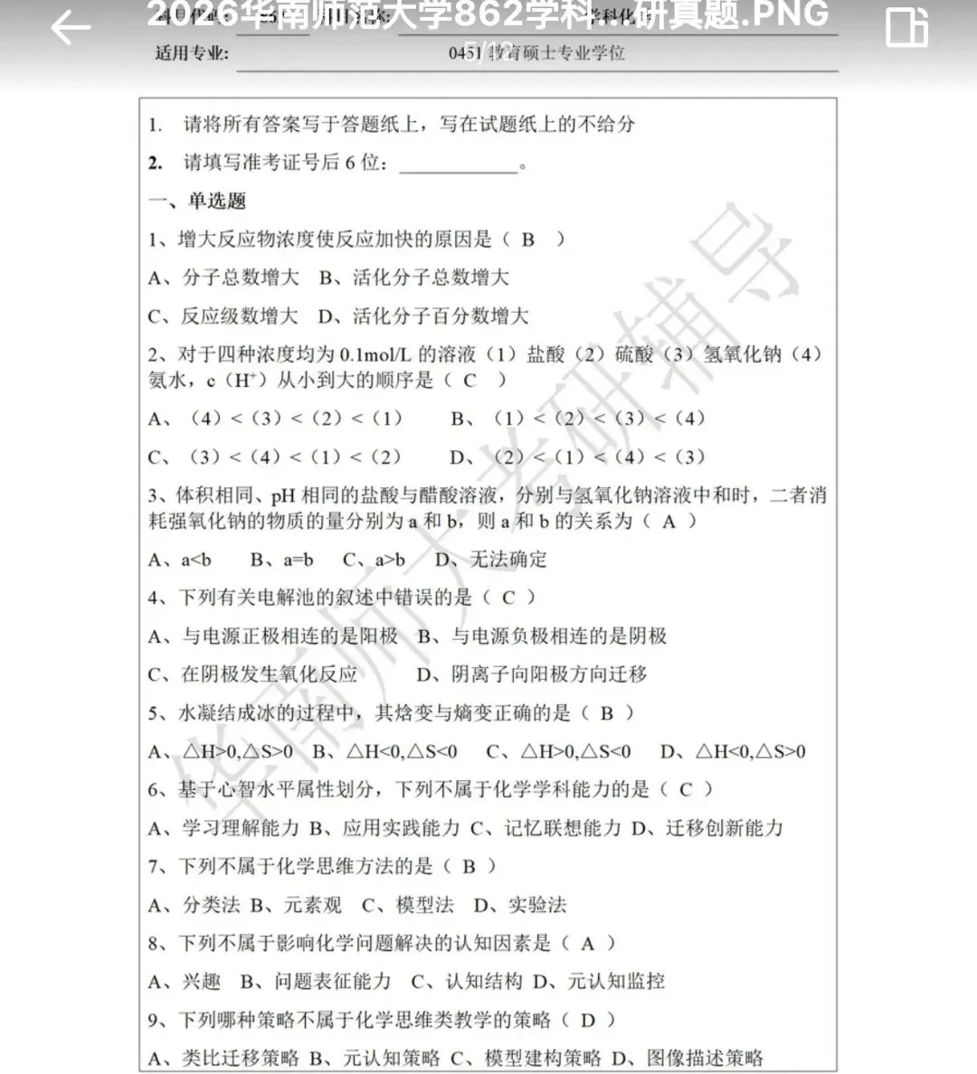 真题内容展示,科目如下:学科英语、学科哲学、学科化学等等