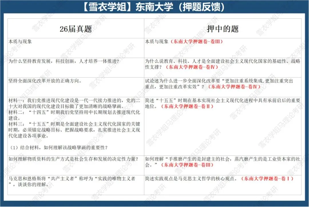 栏目初心是为27届备考马理论的宝子提前解锁各校最新真题、找准适配自己的目标院校,也为26届宝子的复试之路点亮指引方向的明灯。我们会精选各大高校最新真题,拆解为真题预览、押中的题、内容分析与答题思路、题目难度与备考策略四大板块,全方位拆解真题要点,让大家的备考之路少走弯路,思考更有深度,冲刺更有底气!