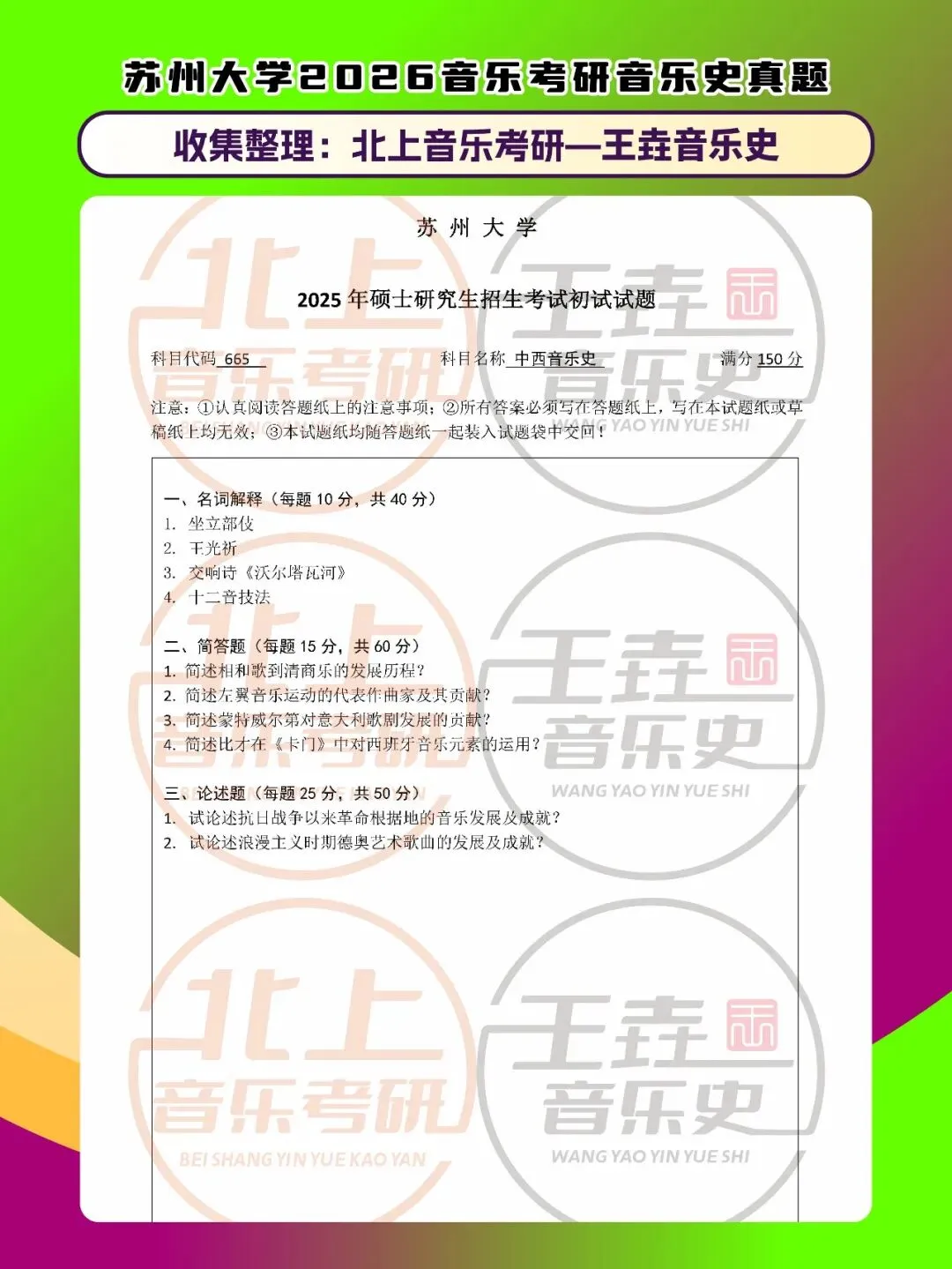 >苏州大学2026音乐考研音乐史真题|北上音乐考研-王垚音乐史工作室收集整理