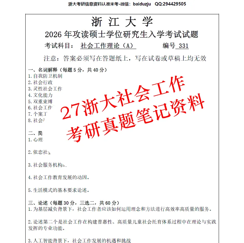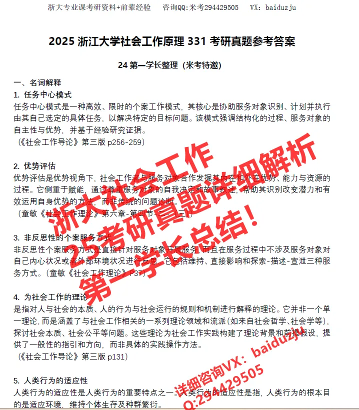 这个笔记不是针对浙大参考书的,但是非常实用—24浙大社工第一学长备考推荐