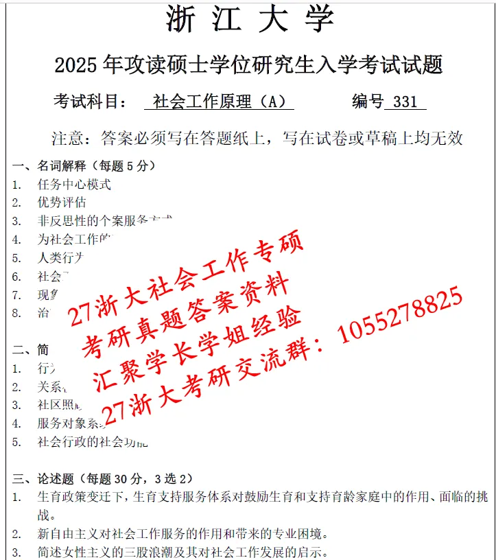 1.2025浙大社会工作复试流程及备考准备及经验后续更新