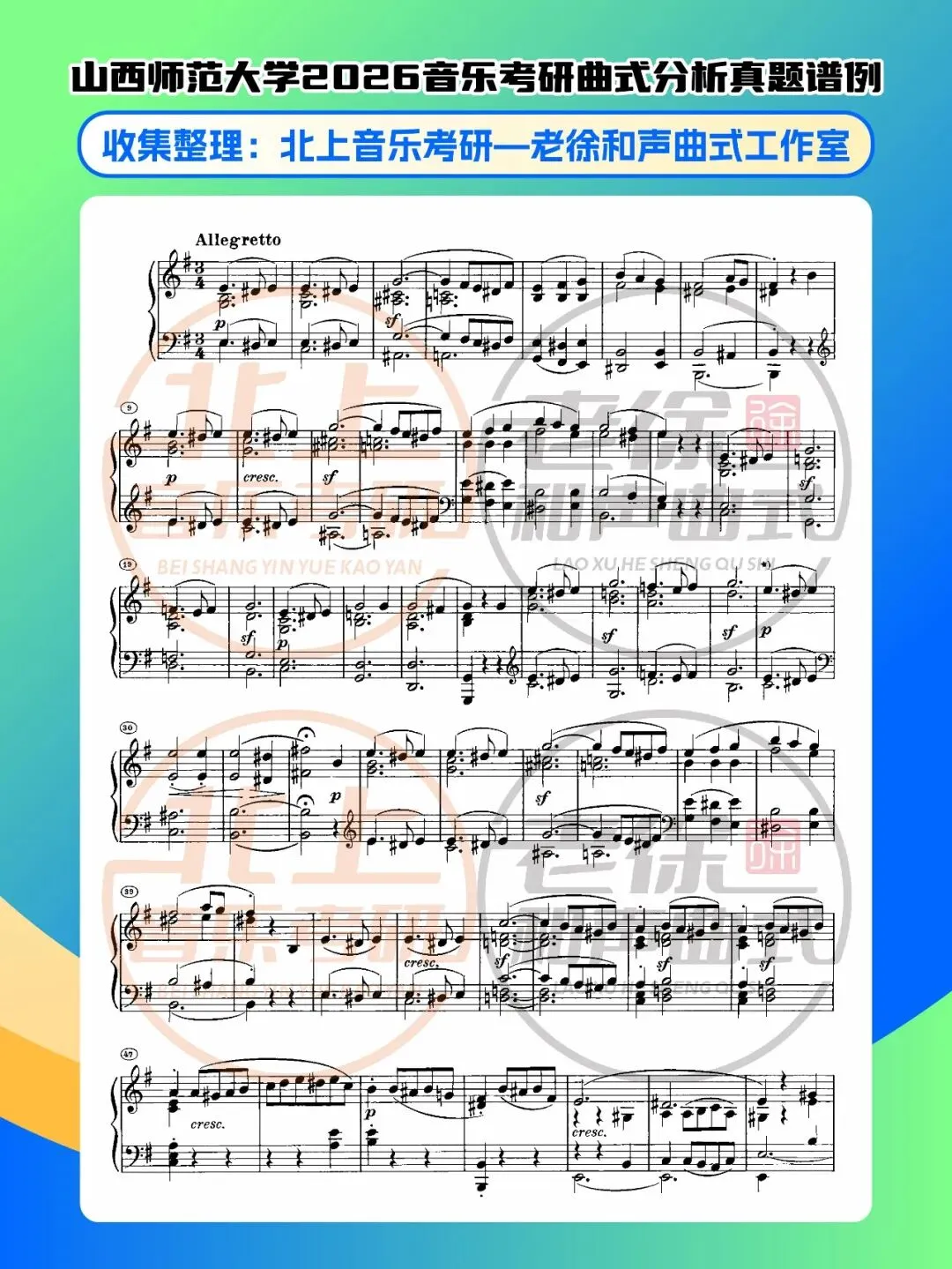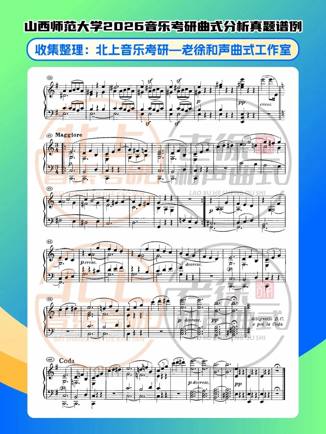 苏州大学2026音乐考研曲式分析真题谱例|北上音乐考研—老徐和声曲式工作室收集整理