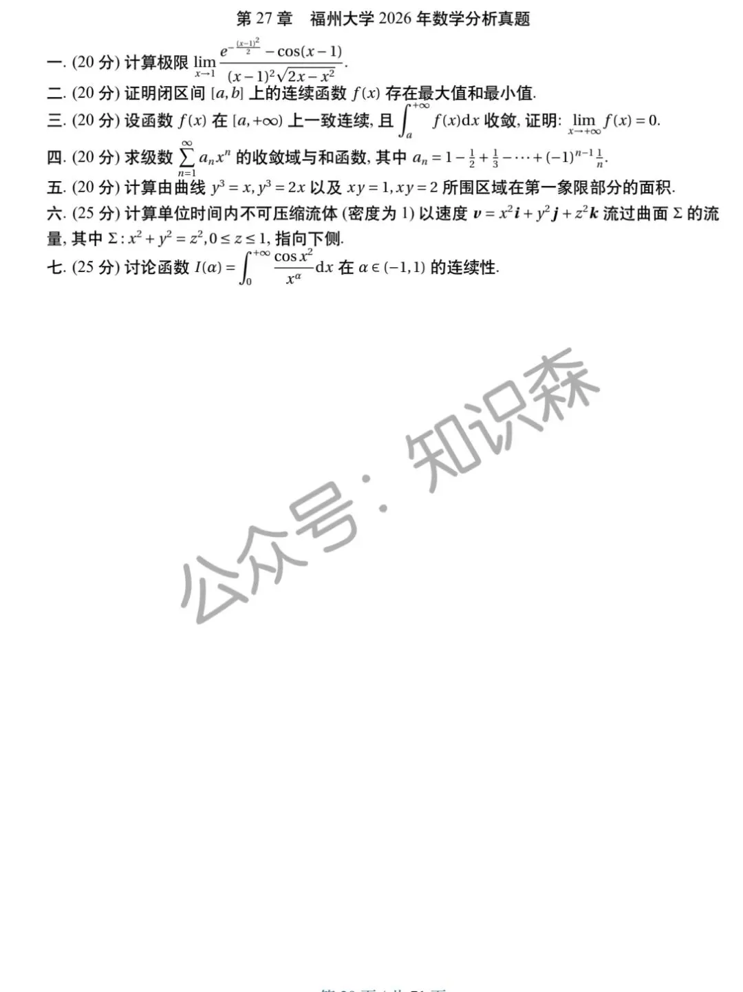 >福州大学2026数学分析考研真题