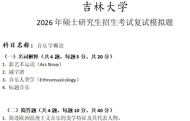 吉林大学音乐学概论考研复试真题模拟含答案