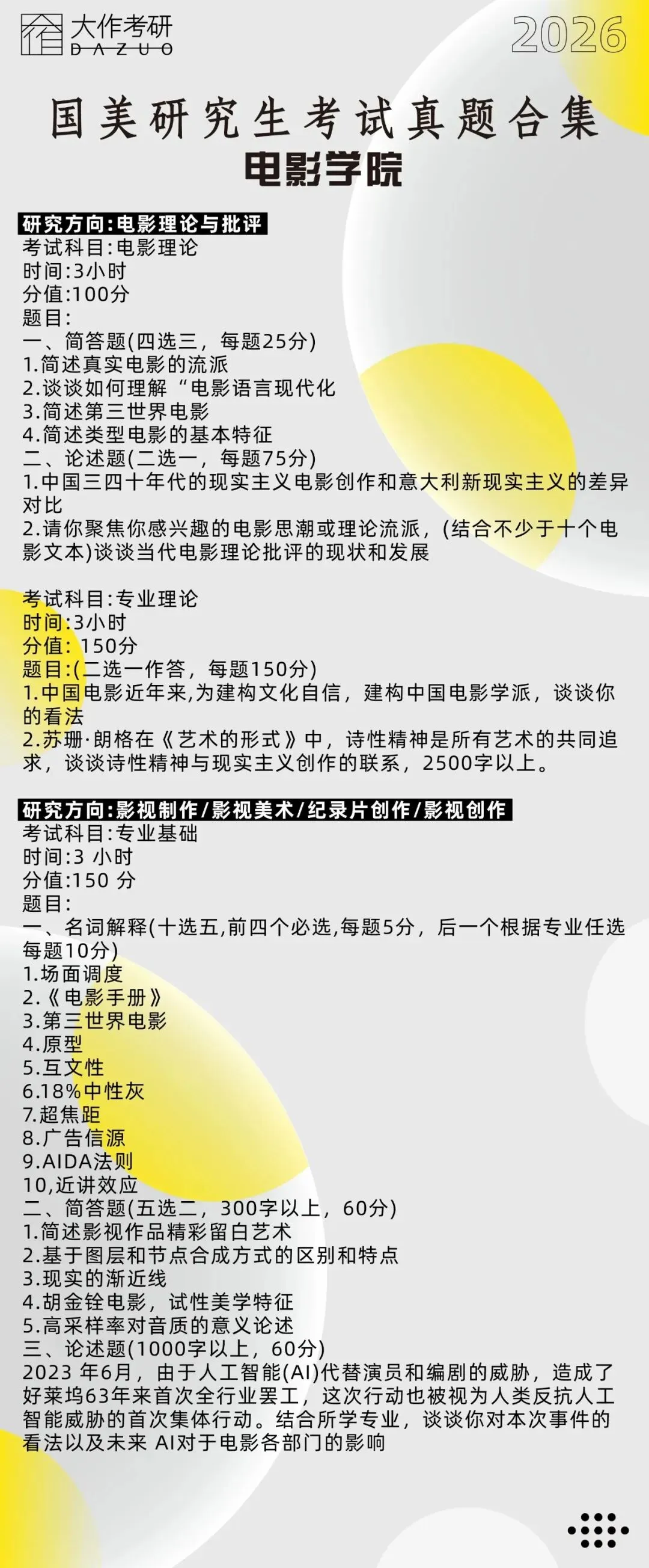 >大作考研·图媒类 | 2026届国美考研真题合集