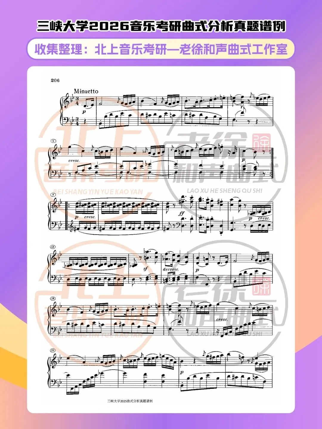 三峡大学2026音乐考研曲式分析真题谱例|北上音乐考研—老徐和声曲式工作室收集整理