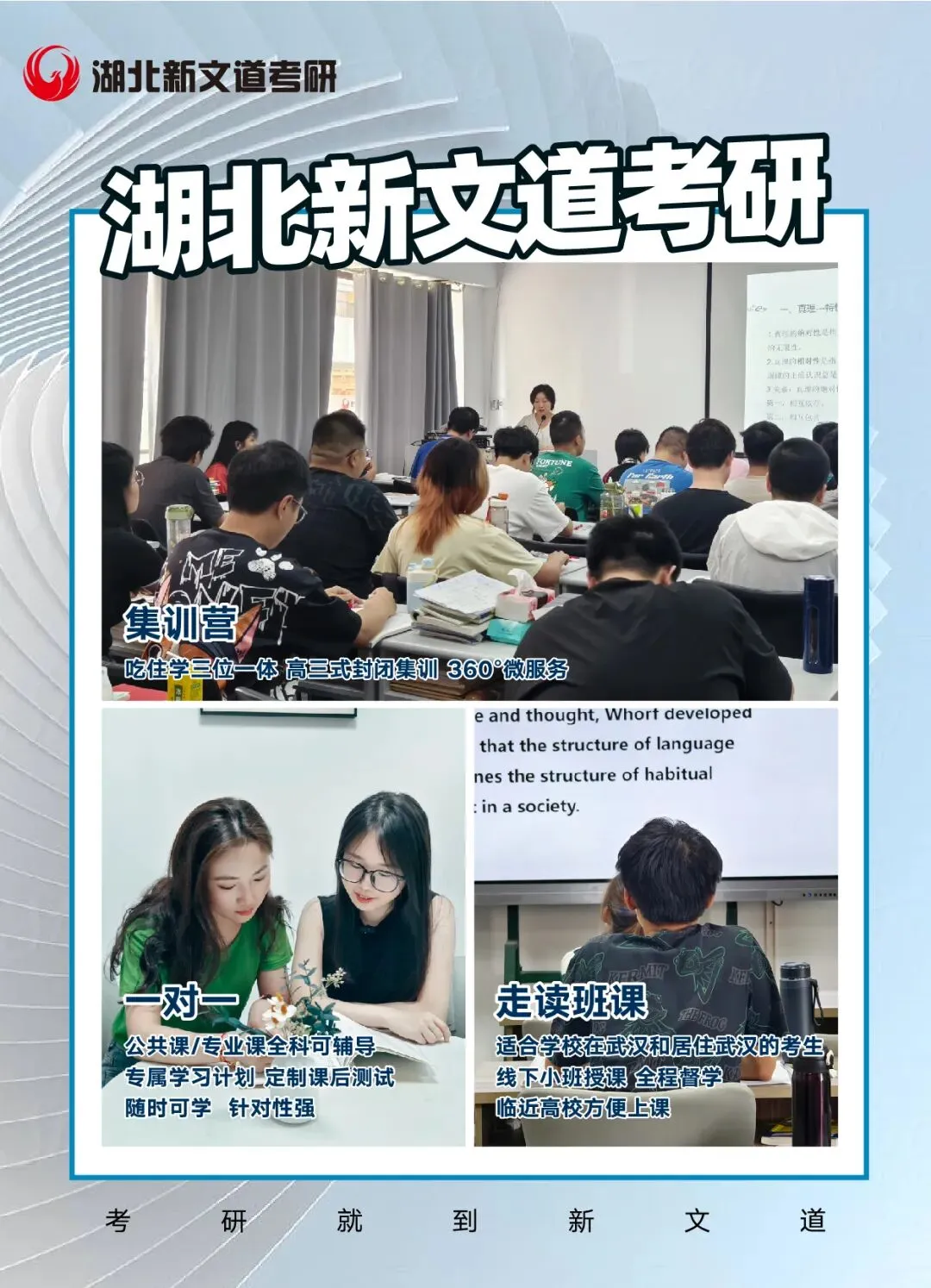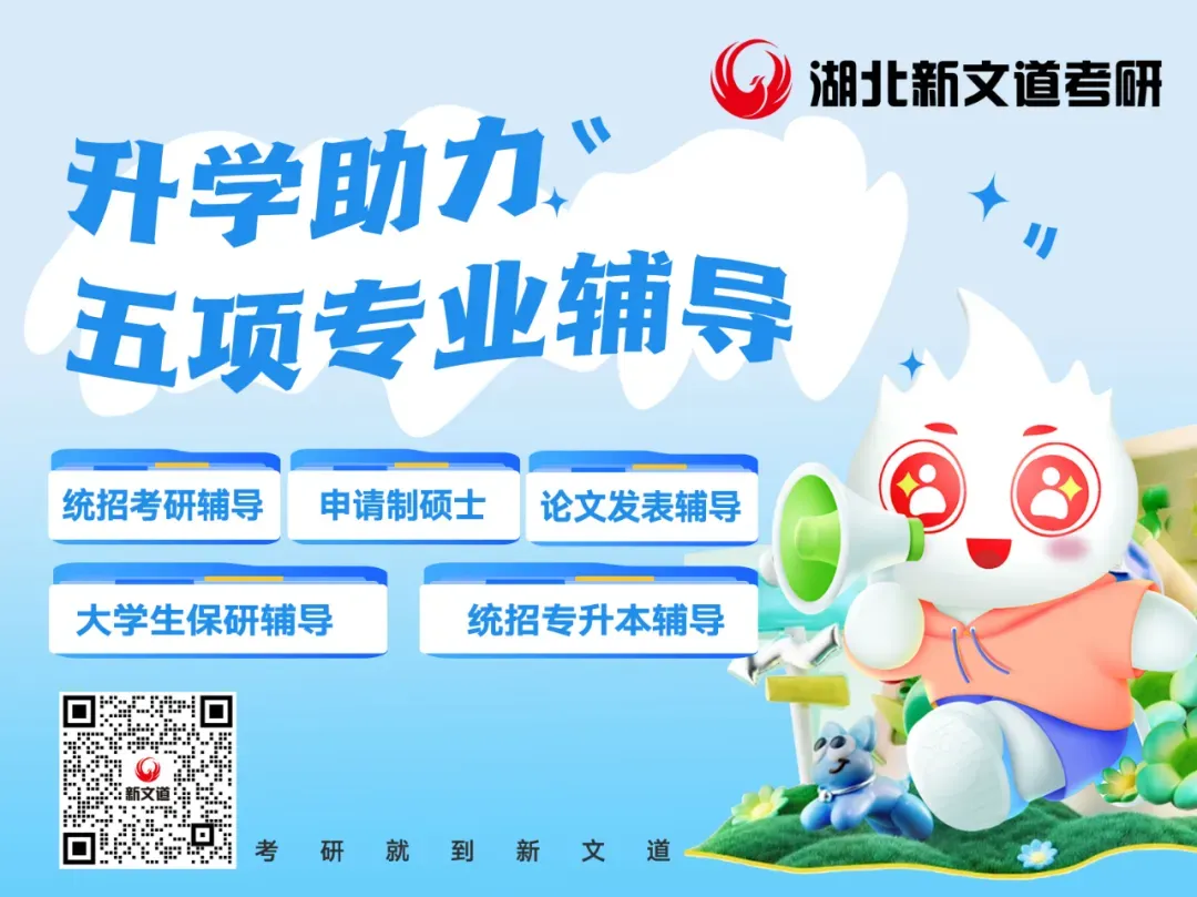 并且湖北新文道考研也会在你复习时,全程陪伴答疑解惑,做到有问题及时解决和巩固。
